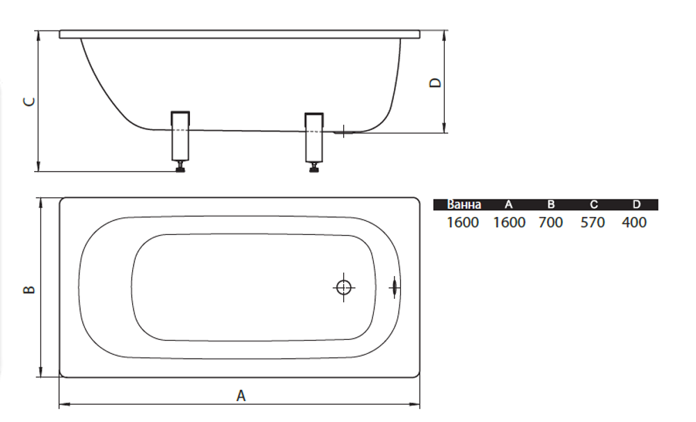 Стальная ванна ВИЗ Donna Vanna 160x70 см, пристенная, белая, на ножках