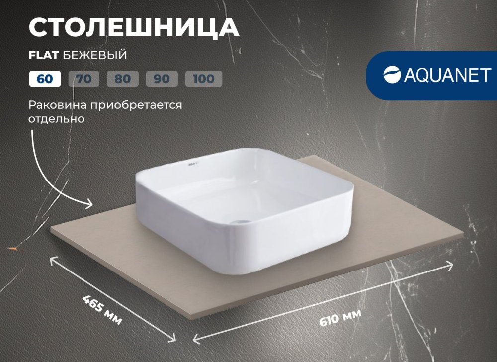 Столешница под раковину в ванную Aquanet Flat 00345759 60 бежевая