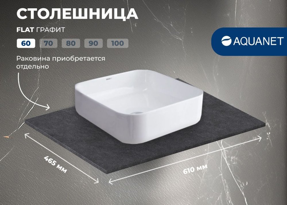Столешница под раковину в ванную Aquanet Flat 00345761 60 графит