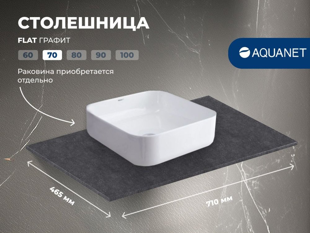 Столешница под раковину в ванную Aquanet Flat 00345764 70 графит