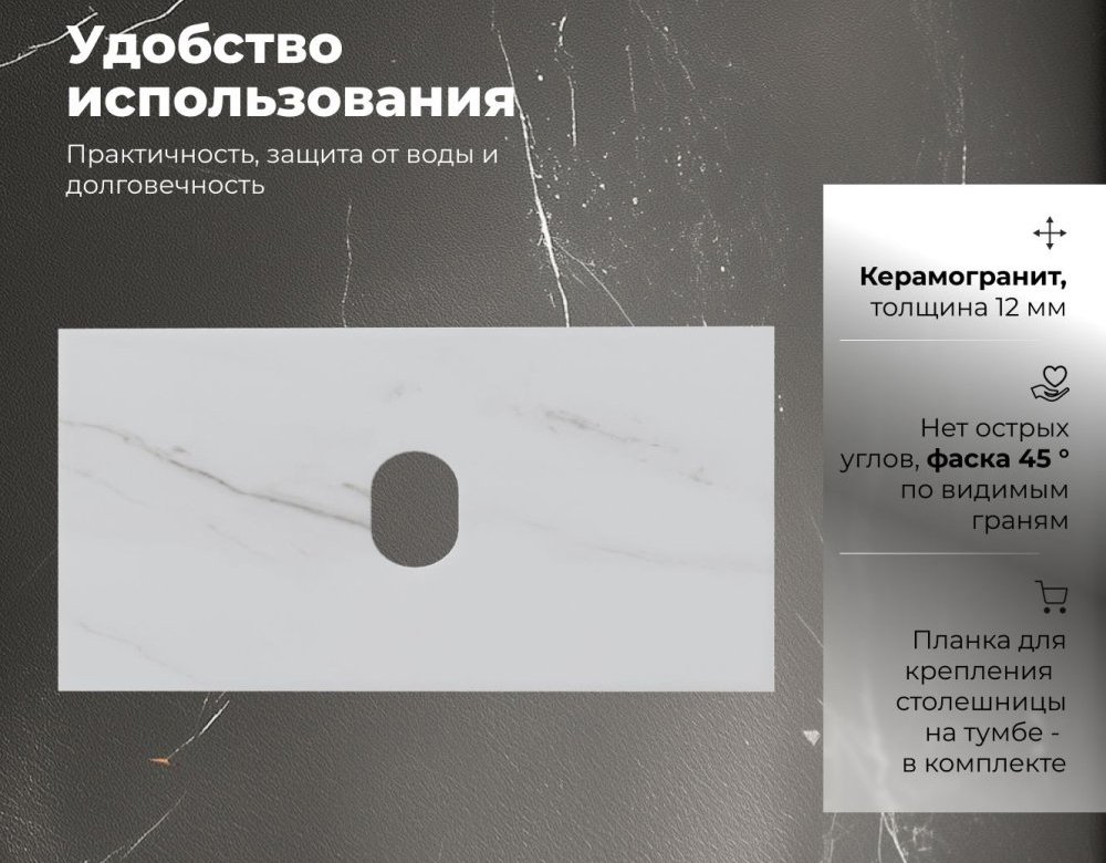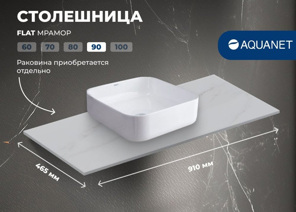Столешница под раковину в ванную Aquanet Flat 00345769 90 мрамор