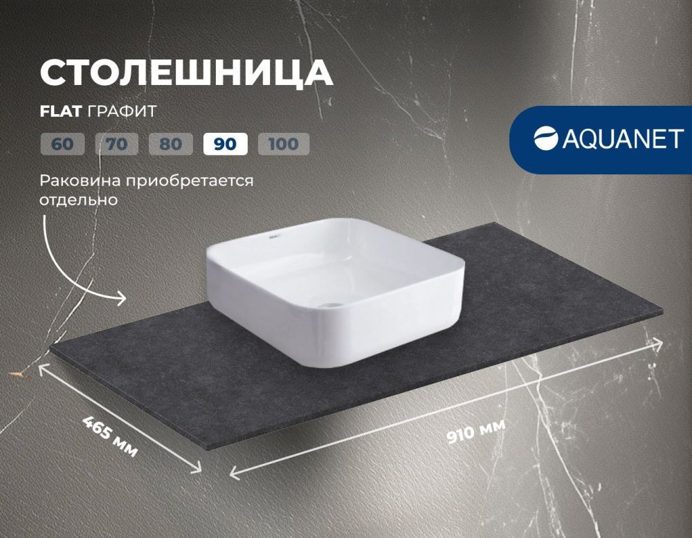 Столешница под раковину в ванную Aquanet Flat 00345770 90 графит