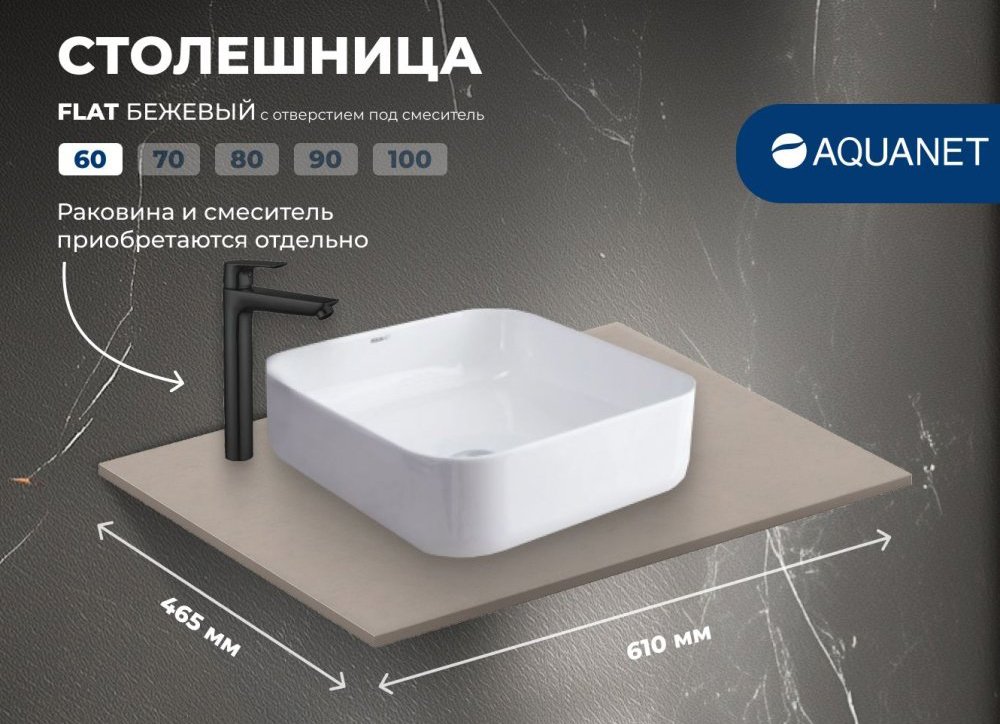 Столешница под раковину в ванную Aquanet Flat 00345774 60 с отверстием под смеситель, бежевая