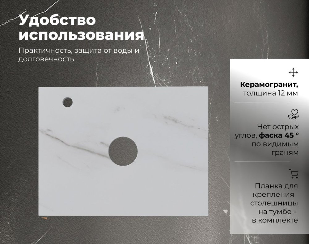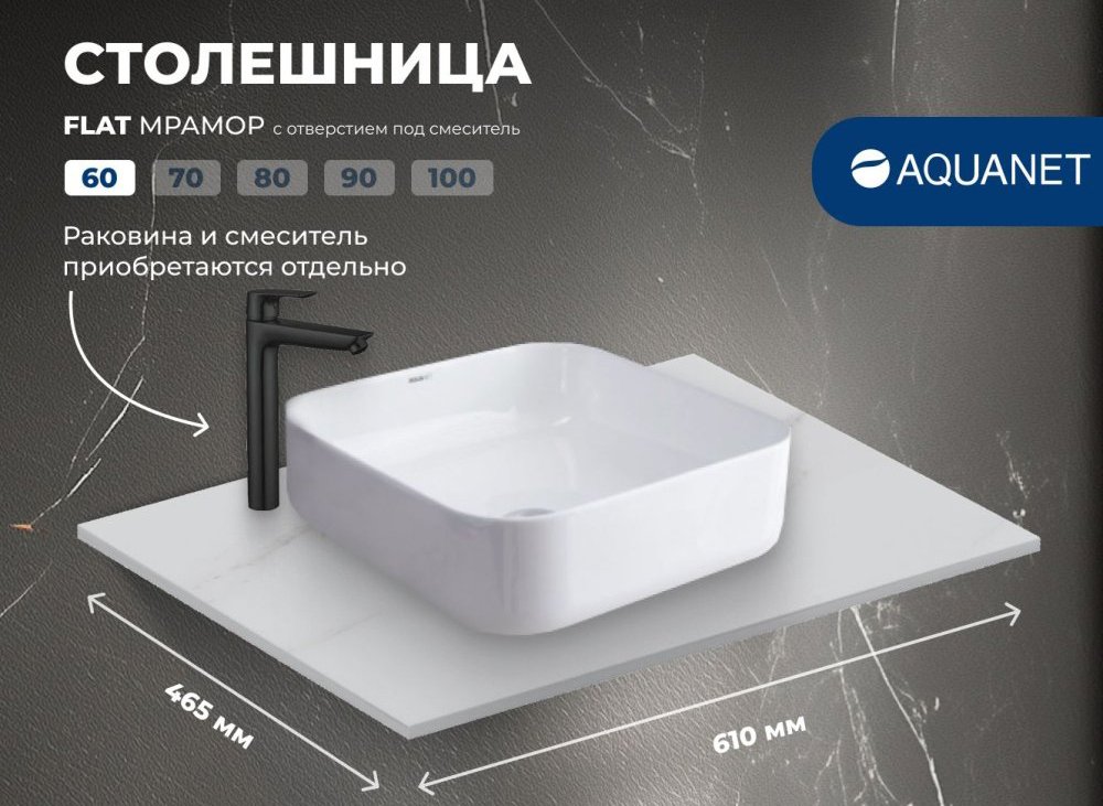 Столешница под раковину в ванную Aquanet Flat 00345775 60 с отверстием под смеситель, мрамор