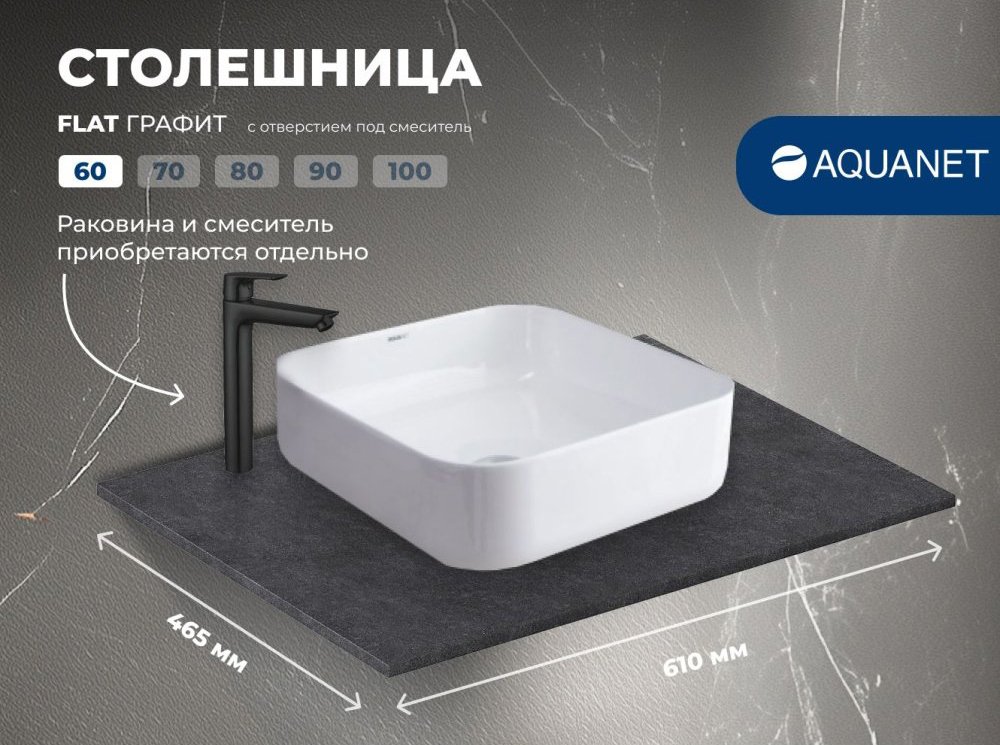 Столешница под раковину в ванную Aquanet Flat 00345776 60 с отверстием под смеситель, графит