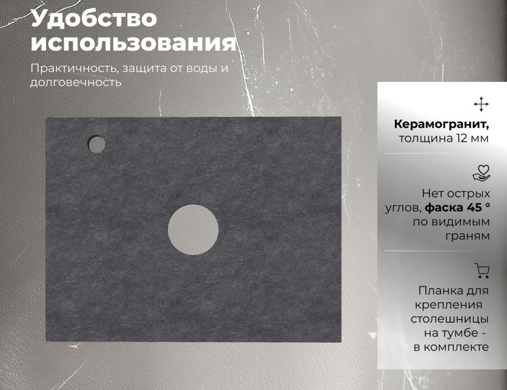 Отзывы о Столешница под раковину в ванную Aquanet Flat 00345776 60 с отверстием под смеситель, графит