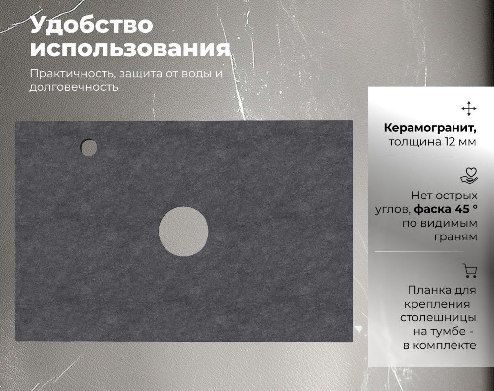 Отзывы о Столешница под раковину в ванную Aquanet Flat 00345779 70 с отверстием под смеситель, графит