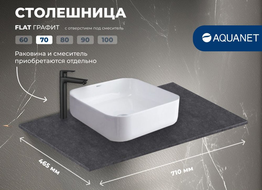 Столешница под раковину в ванную Aquanet Flat 00345779 70 с отверстием под смеситель, графит
