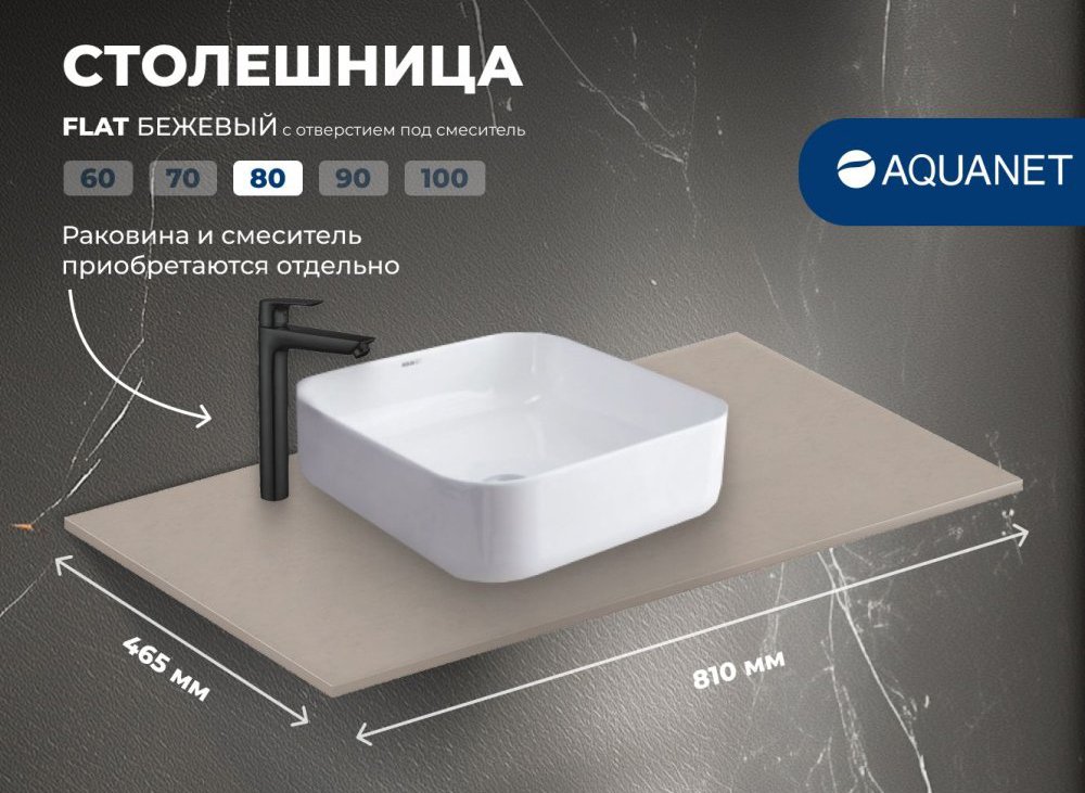 Отзывы о Столешница под раковину в ванную Aquanet Flat 00345780 80 с отверстием под смеситель, бежевая