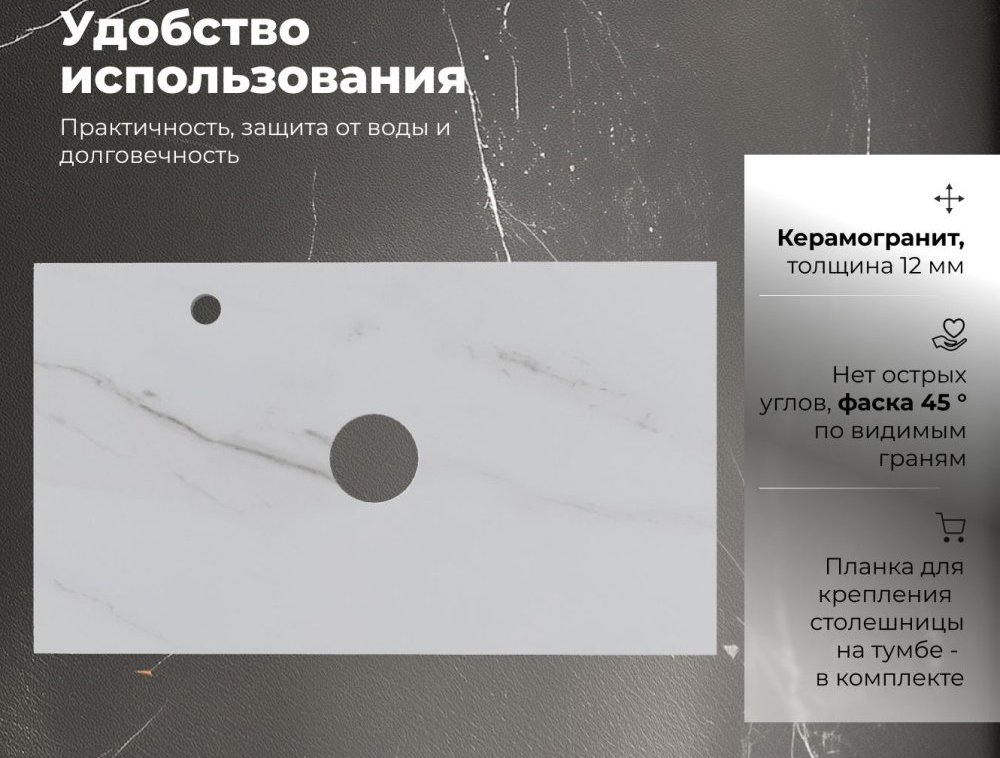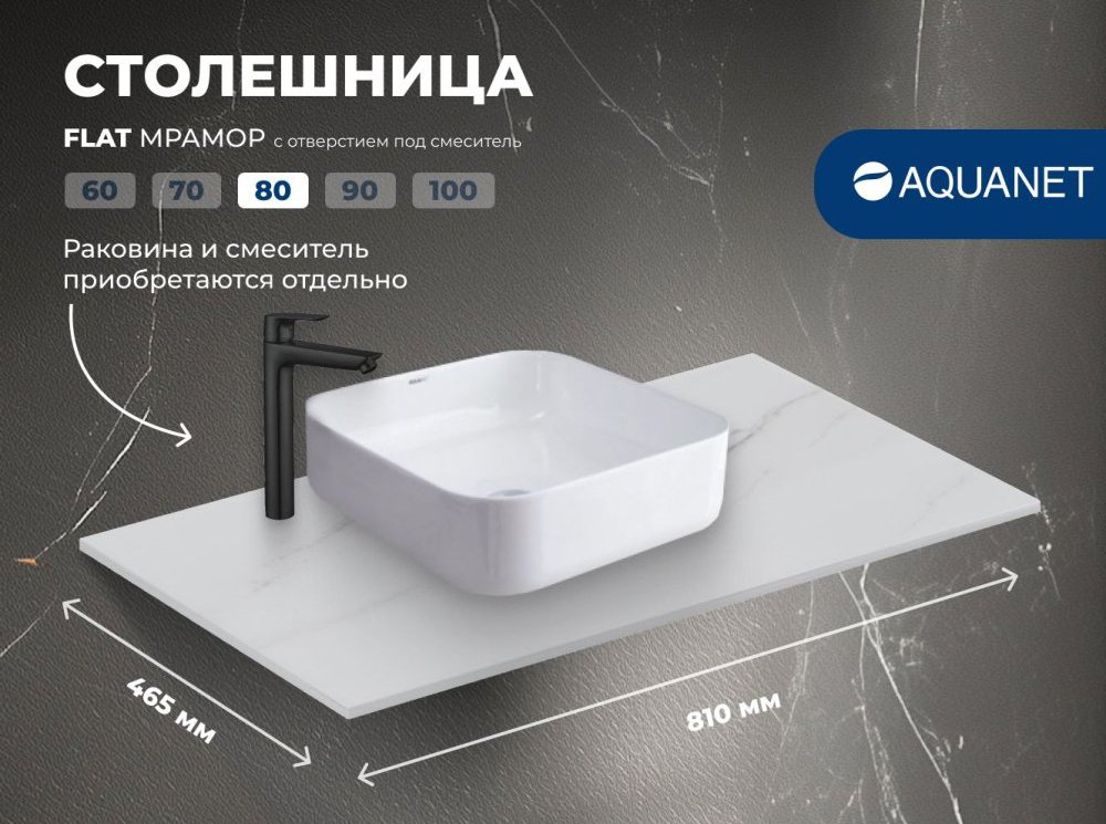 Столешница под раковину в ванную Aquanet Flat 00345781 80 с отверстием под смеситель, мрамор