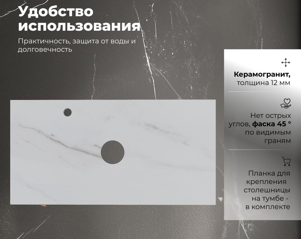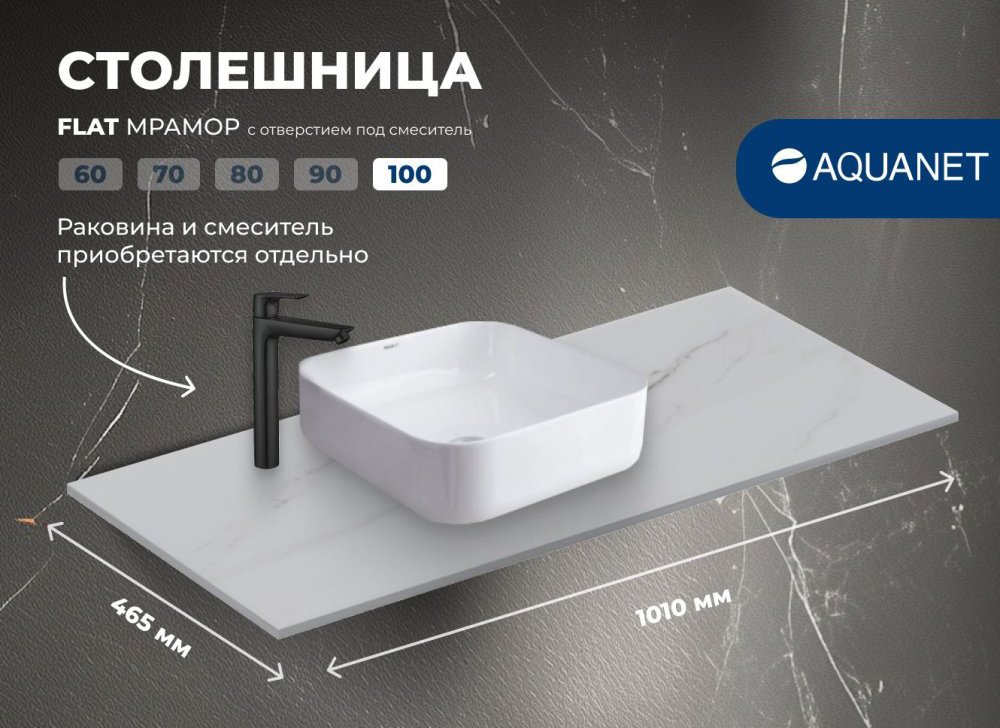 Столешница под раковину в ванную Aquanet Flat 00345787 100 с отверстием под смеситель, мрамор