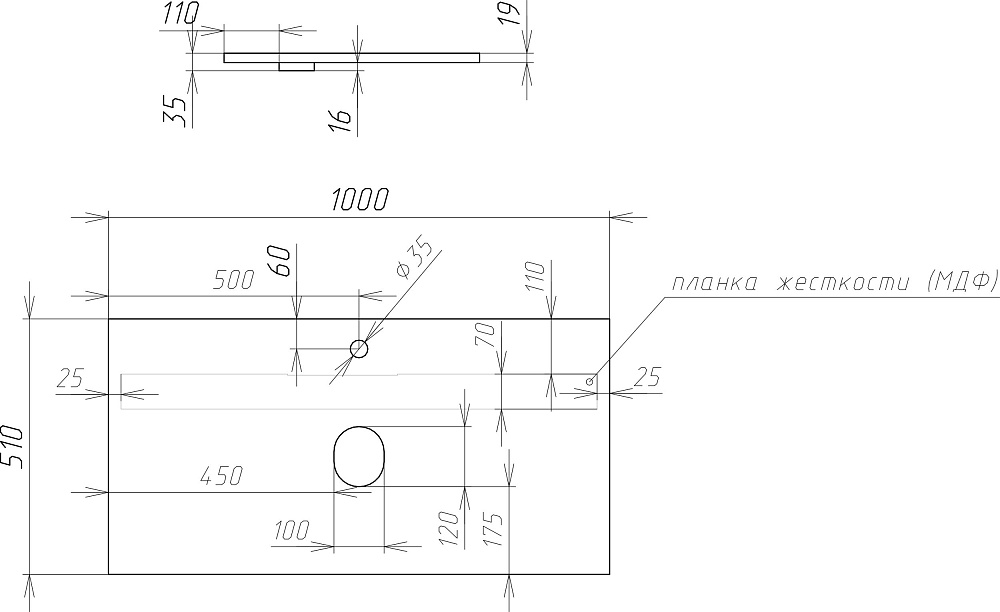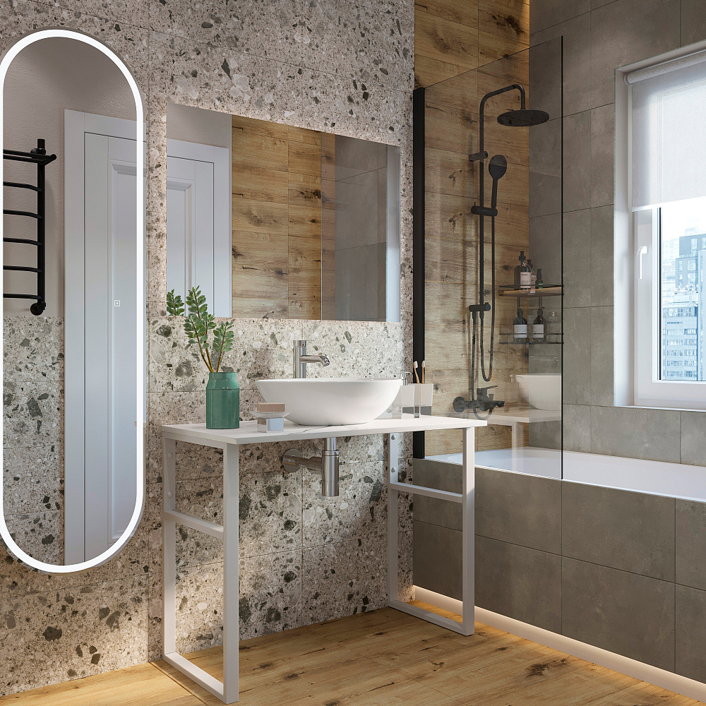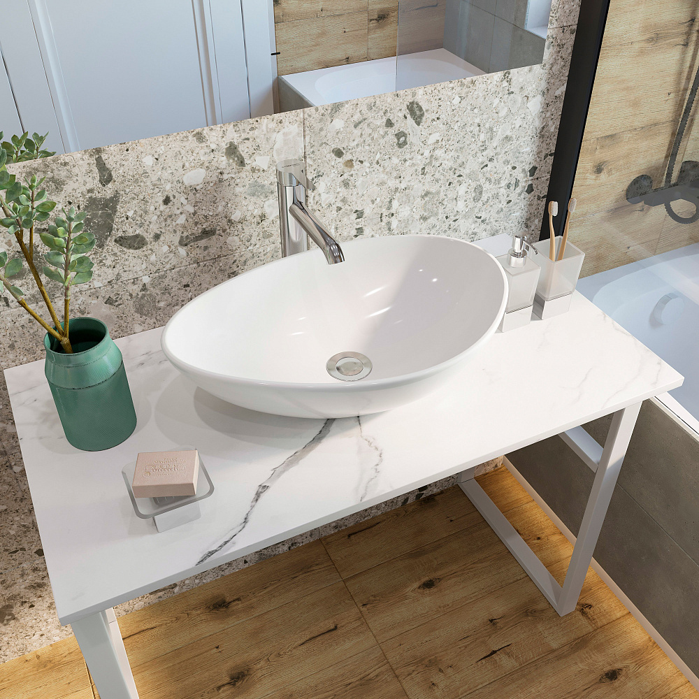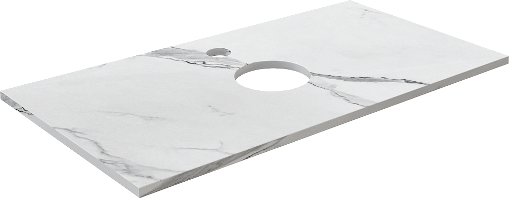 Столешница под раковину в ванную DIWO Элиста 100 белый мрамор, отверстие по центру, без кронштейнов