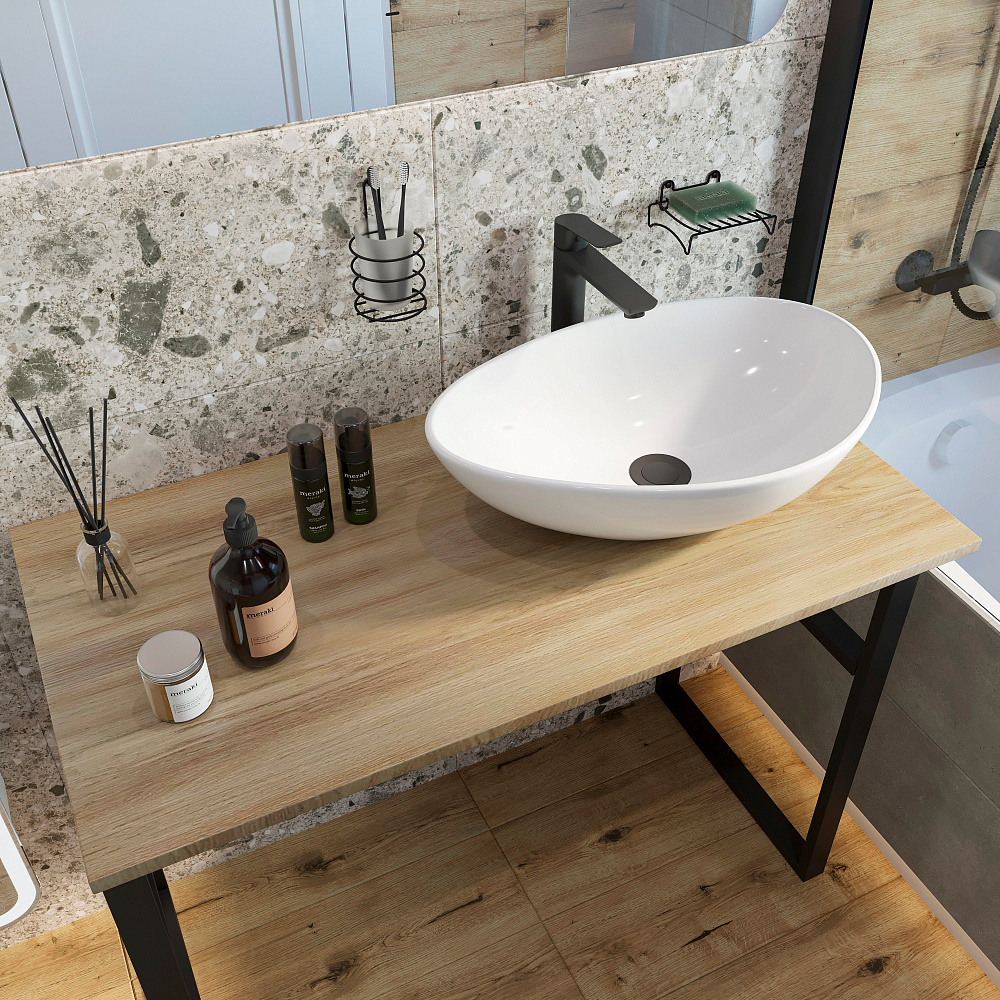 Столешница под раковину в ванную DIWO Элиста 100 светлое дерево, отверстие справа, без кронштейнов