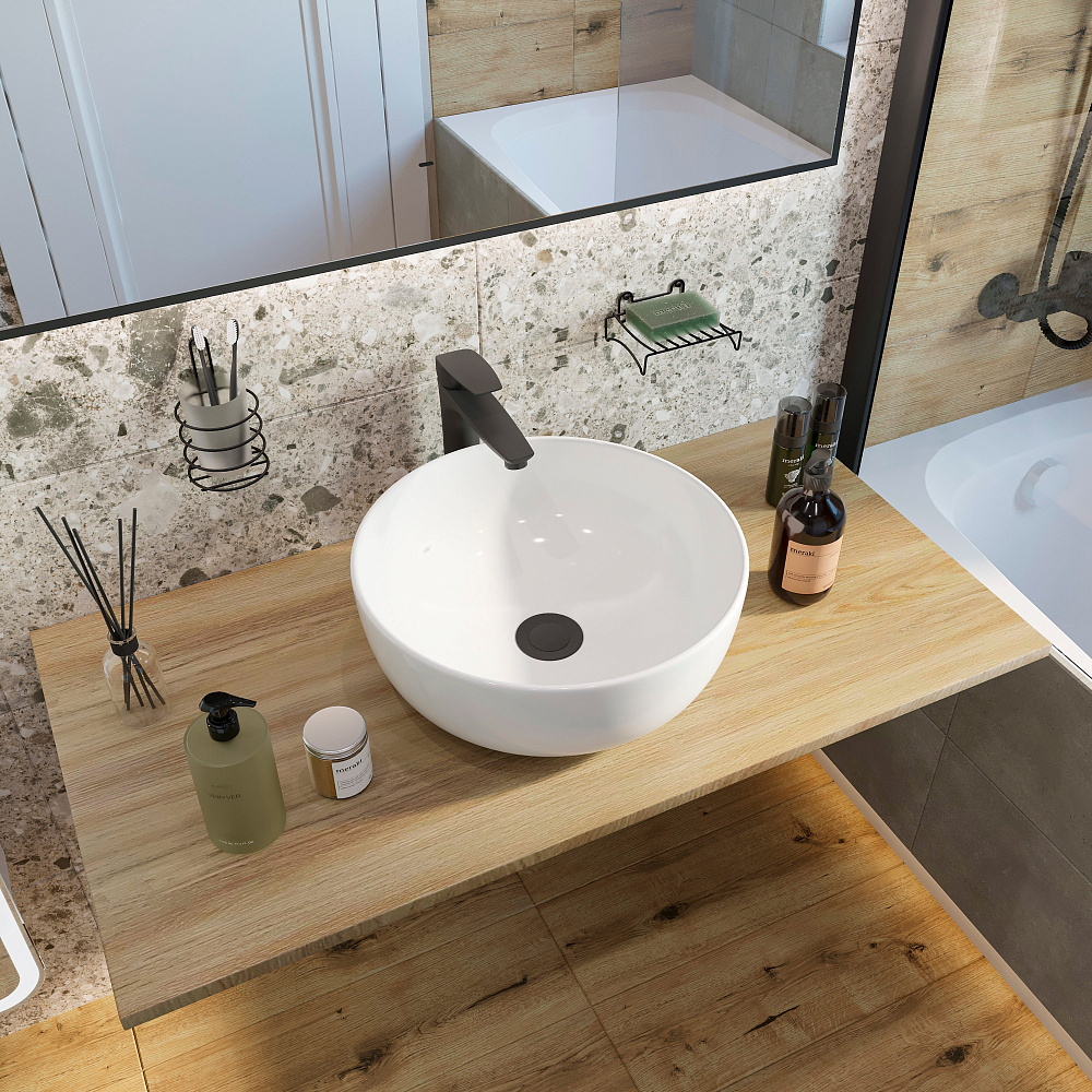 Столешница под раковину в ванную DIWO Элиста 100 светлое дерево, отверстие по центру, без кронштейнов