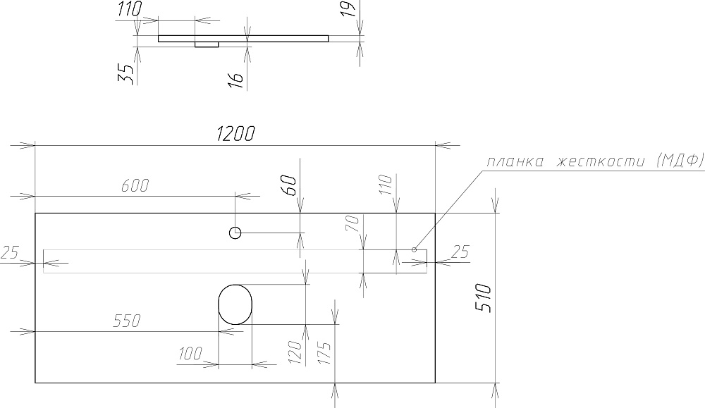 Столешница под раковину в ванную DIWO Элиста 120 белый мрамор, отверстие по центру, без кронштейнов