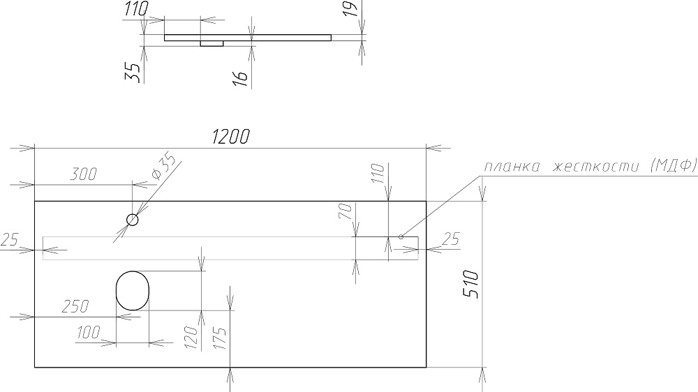 Столешница под раковину в ванную DIWO Элиста 120 светлое дерево, отверстие слева, без кронштейнов
