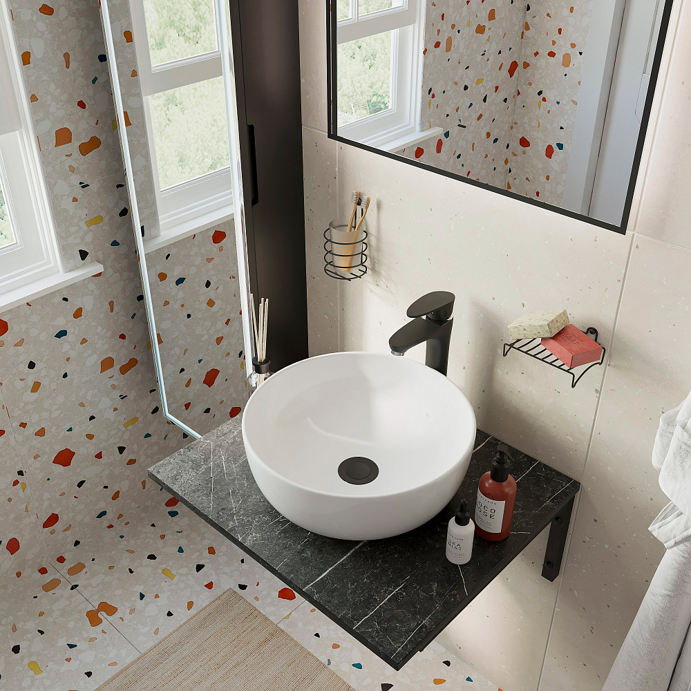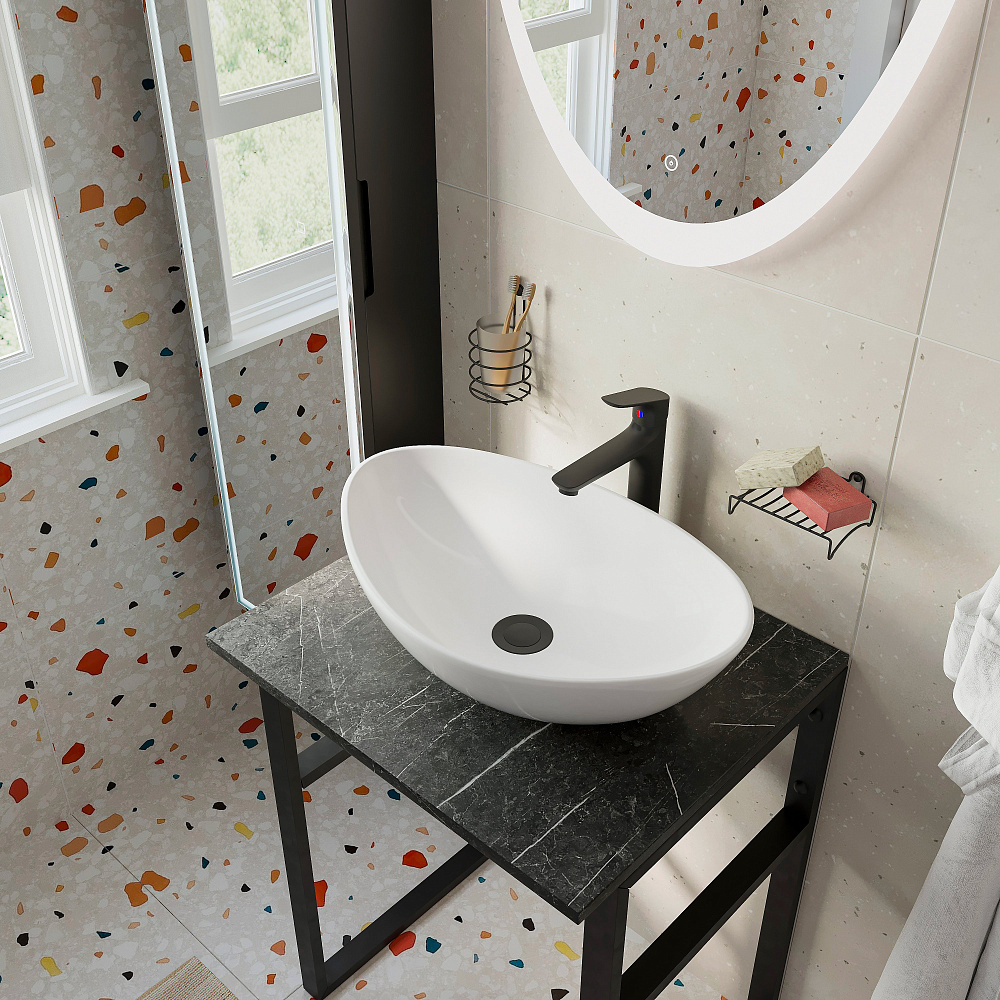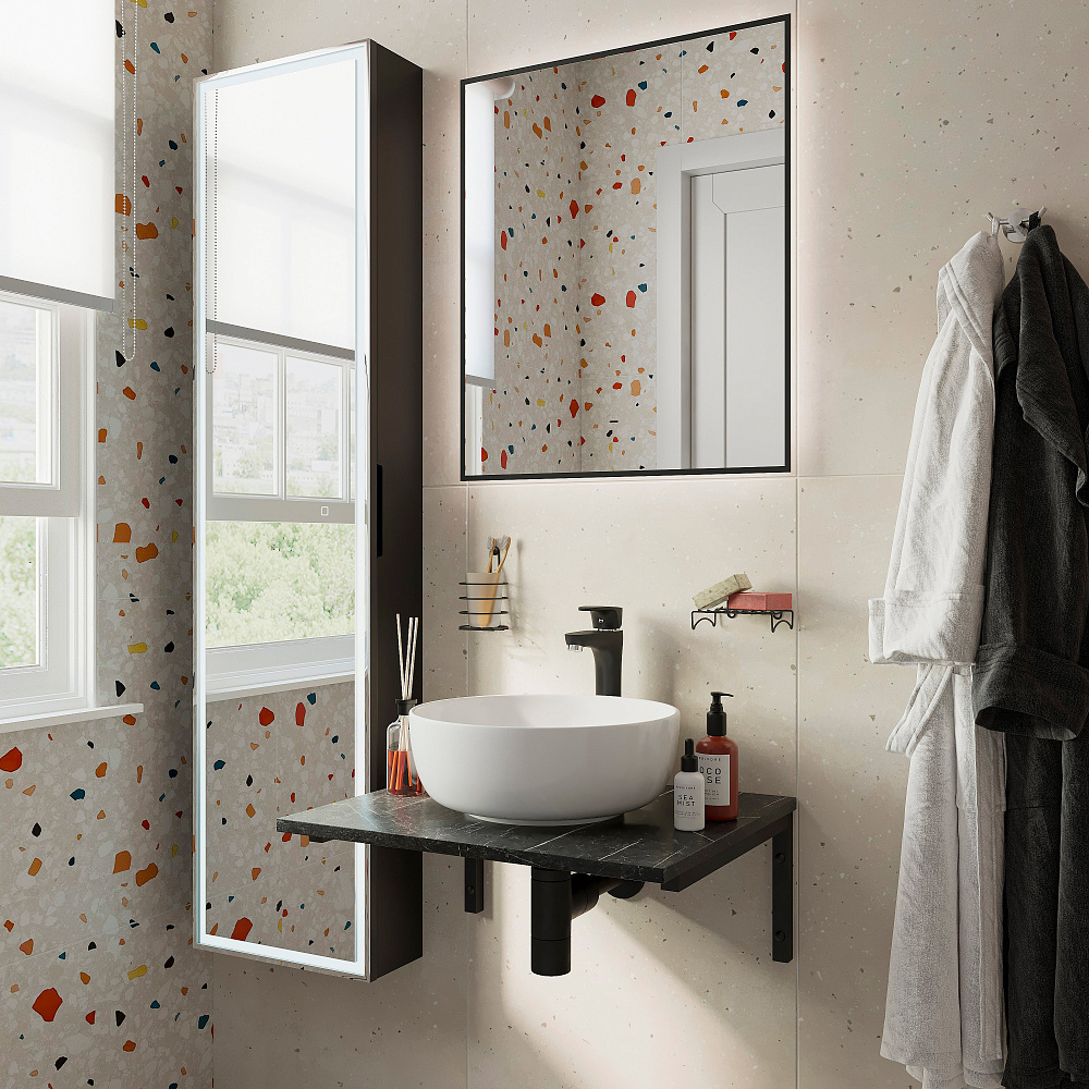 Столешница под раковину в ванную DIWO Элиста 60 черный мрамор, без кронштейнов