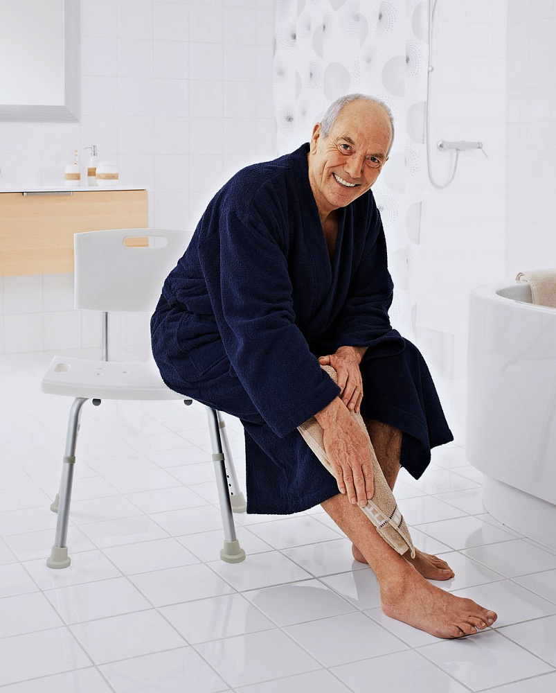Благодаря табурету Ridder Assistent А00602101 ванная комната станет зоной комфорта и безопасности для детей, пожилых людей и людей с ограниченными возможностями. Модель оснащена удобной спинкой. Посадочная часть широкая (49 см), со специальными отверстиями для переноски стула. Высота изделия регулируется в пределах 34,5–51,6 см с помощью телескопических ножек. Резиновые накладки надежно фиксируют табурет на полу, не давая ему скользить. Конструкция из прочного пластика и алюминия отличается износостойкостью и долговечностью даже в условиях агрессивной влажной среды.