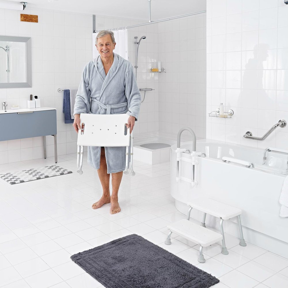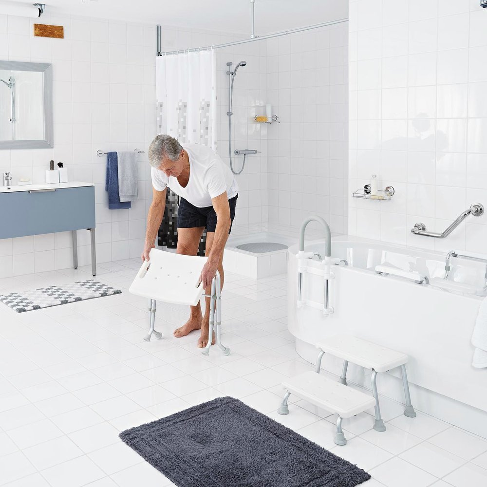 Табурет Assistent А0050301 разработан немецкой компанией Ridder для безопасного и комфортного проведения гигиенических процедур в ванной комнате. Модель из влагостойкого алюминия и ударопрочного пластика пригодится пожилым людям, лицам с ограниченными возможностями и в семьях с детьми. Конструкция табурета анатомически удобна. Его высота регулируется от 47 до 51 см, максимальная нагрузка – 110 кг. Изделие не скользит по плиточному полу благодаря резиновым накладкам на ножках. Сиденье имеет вентилируемую рифленую поверхность, благодаря чему быстро высыхает в условиях высокой влажности ванной комнаты. При необходимости табурет легко складывается и переносится.