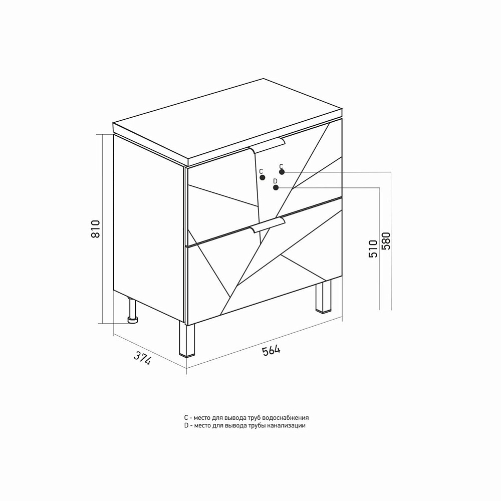 Тумба д/ванной "Гранд-60" под ум.Fest-60 (Sanita Lux) (ПВХ)
