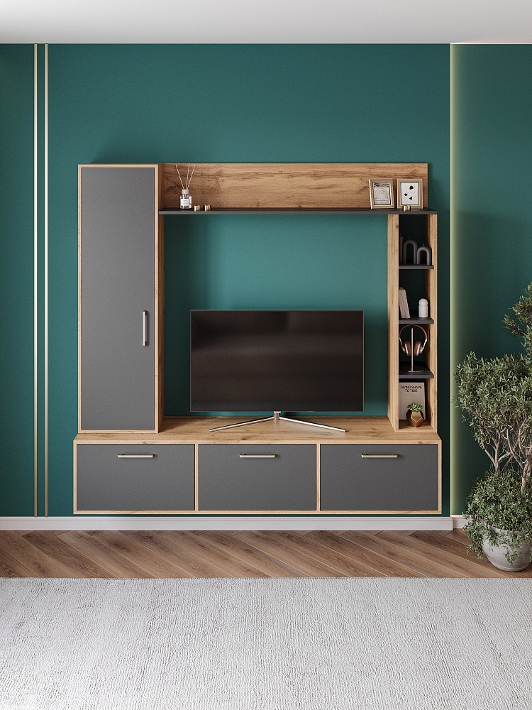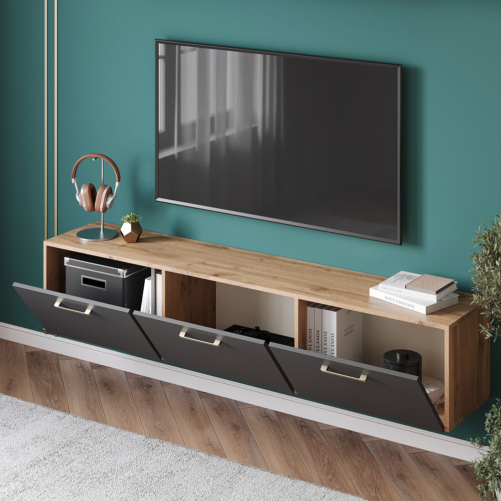 Тумба под телевизор DIWO Кострома 180х36х35 см дуб вотан, антрацит, ручка золото