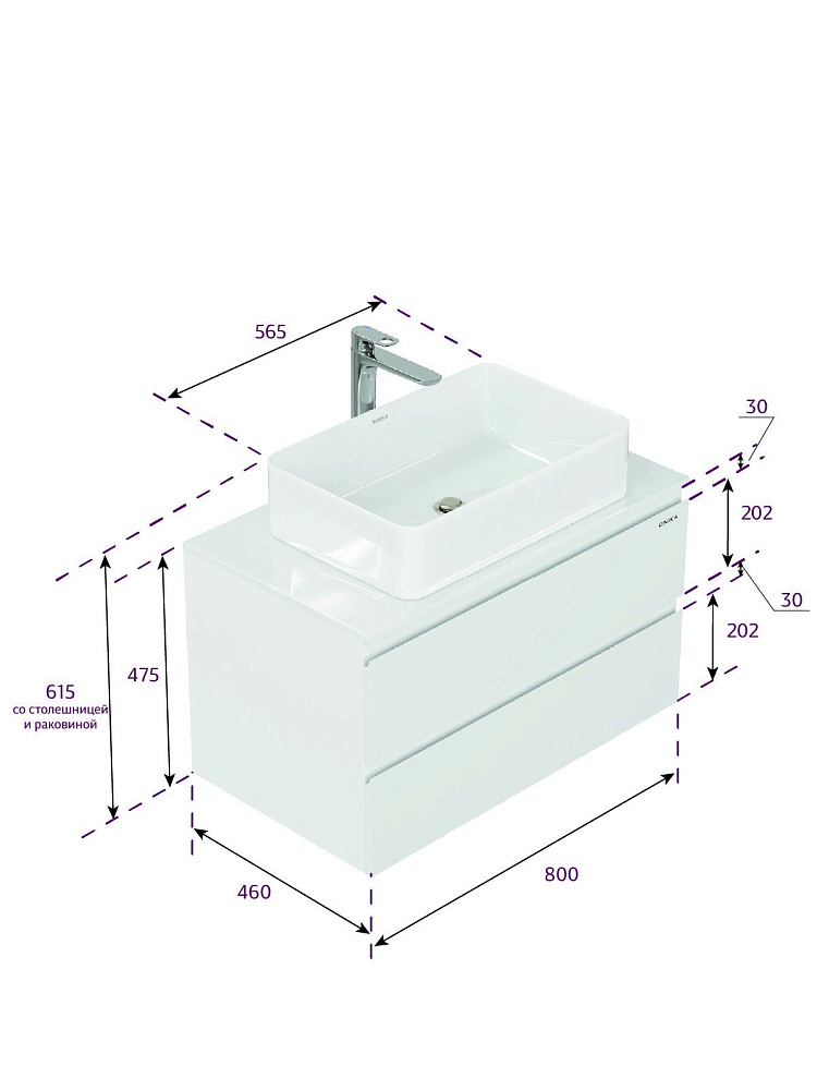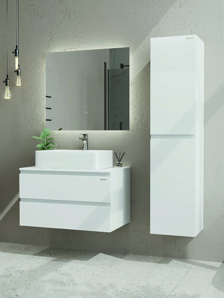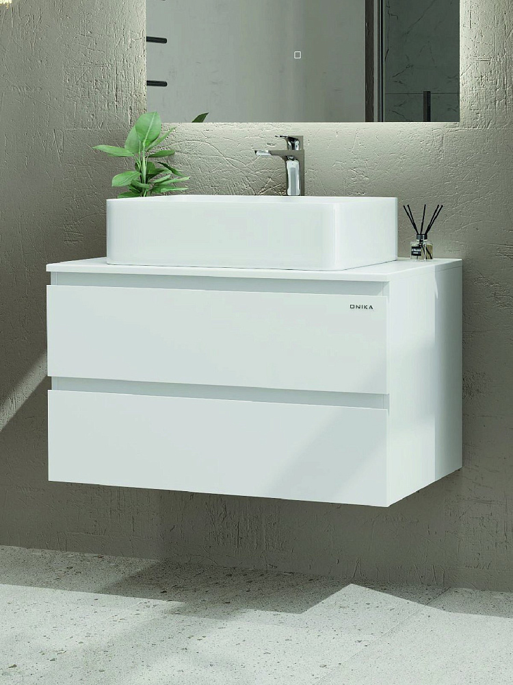 Тумба для ванной комнаты Onika Алеста 80 подвесная, белая (под накладную раковину Олимпия 56)