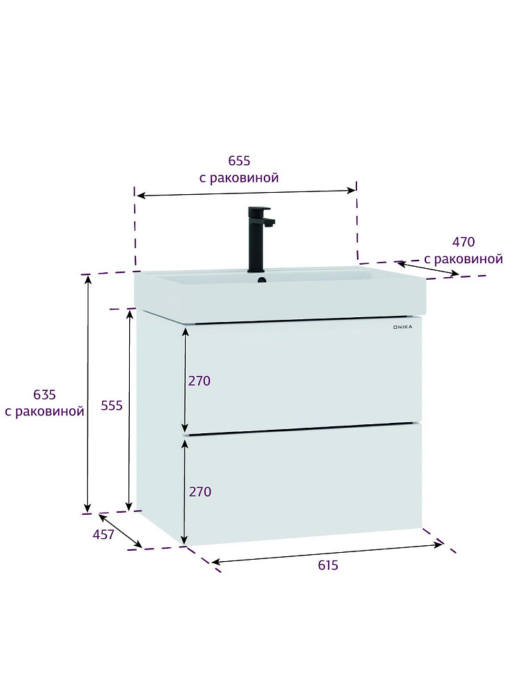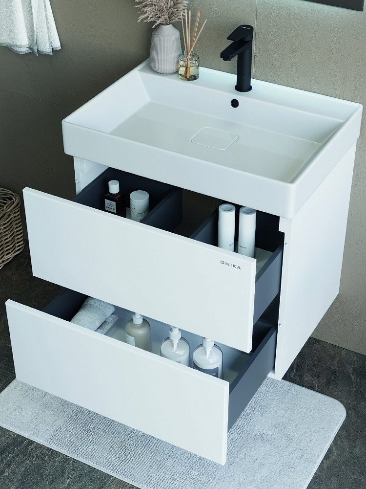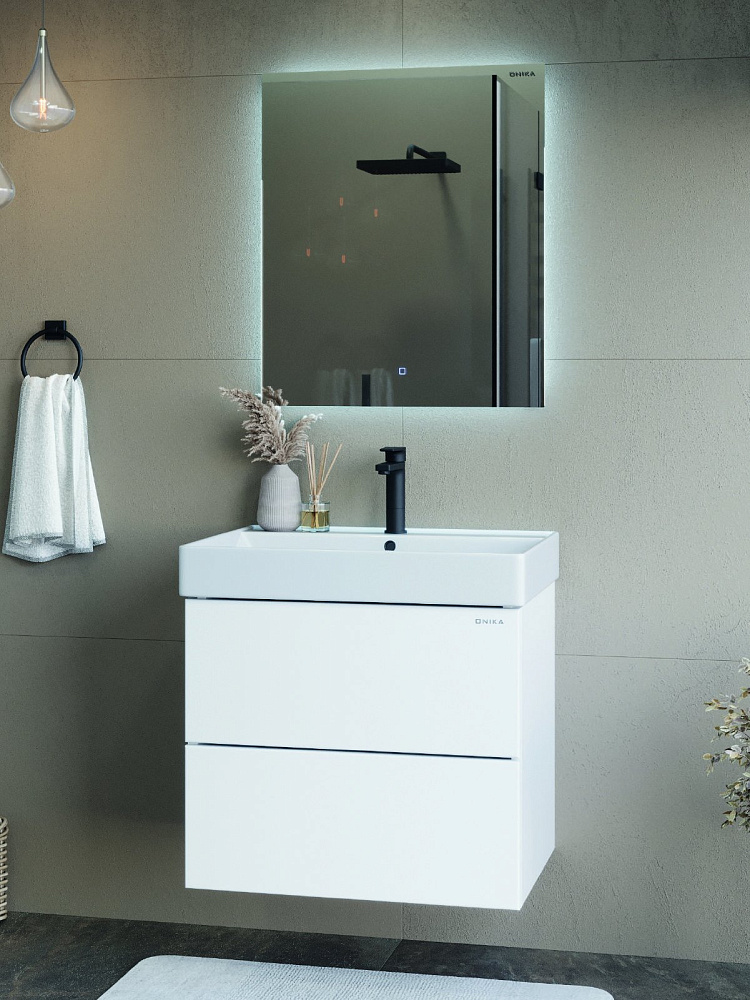 Тумба для ванной комнаты Onika Эсквана 65 подвесная, белая (под раковину Вилис 65)