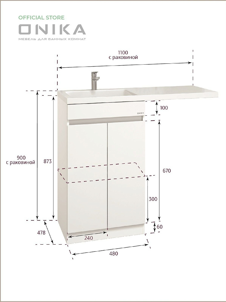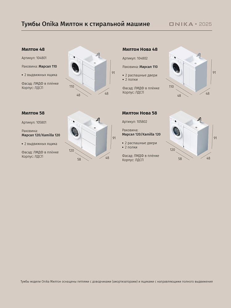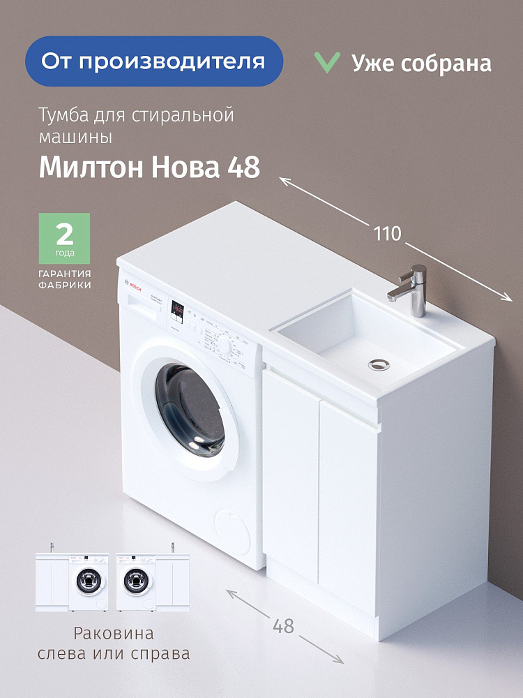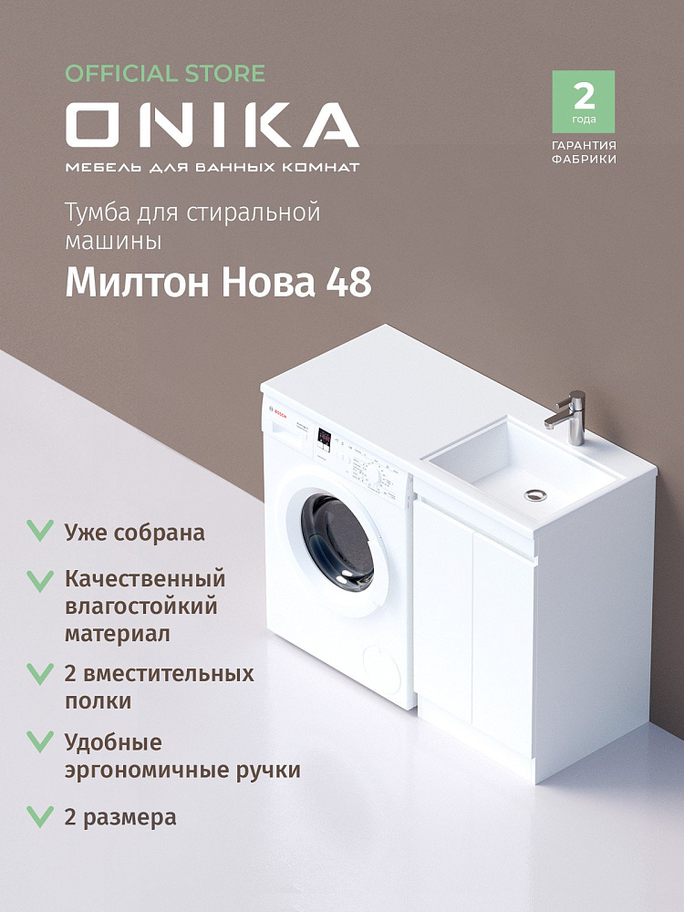 Тумба для ванной комнаты Onika Милтон Нова 48 напольная под стиральную машину, белая (под раковину Марсал 110)