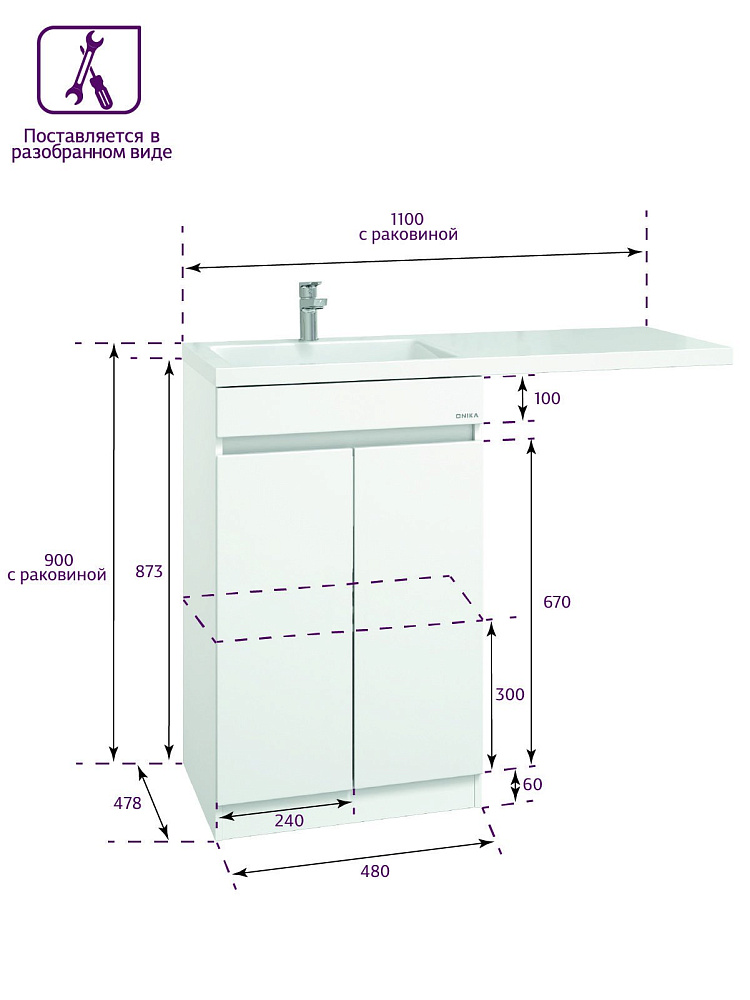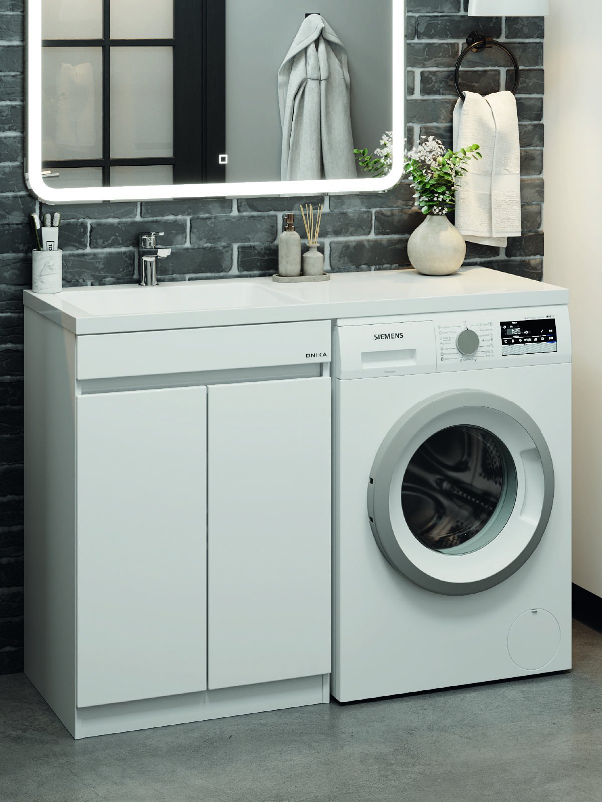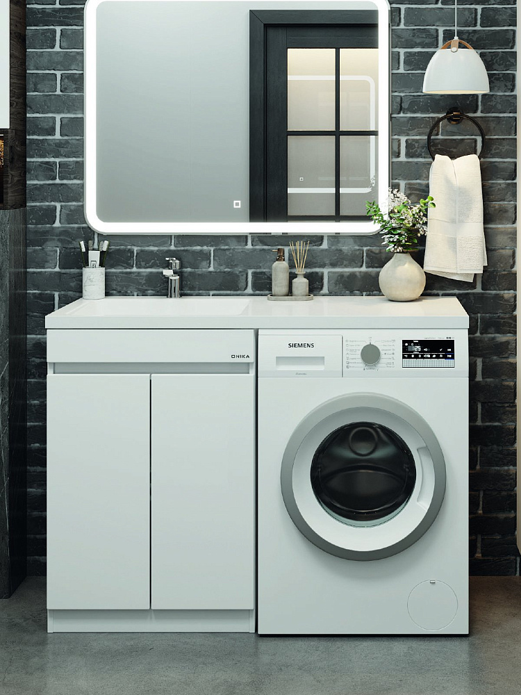 Тумба для ванной комнаты Onika Милтон Нова 48 напольная под стиральную машину, белая, разборная (под раковину Марсал 110)