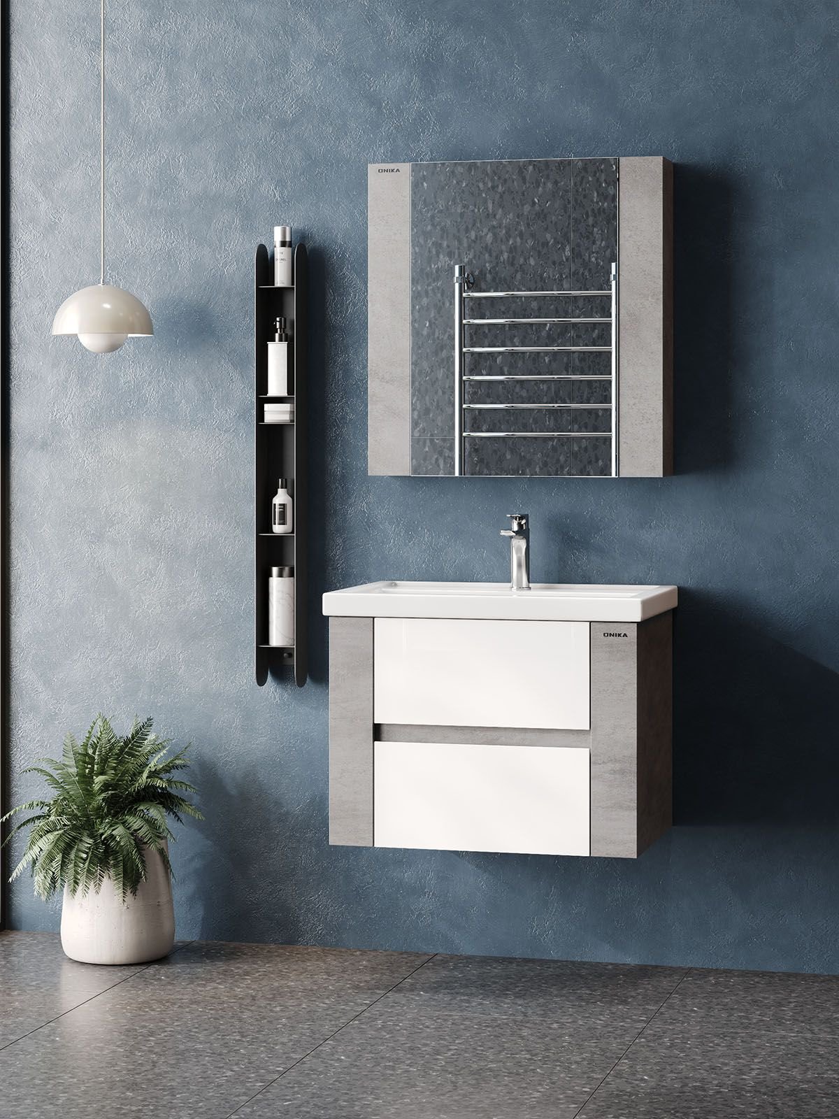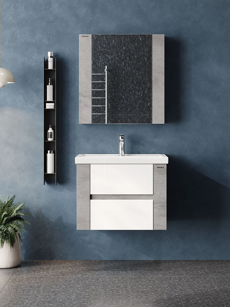 Тумба для ванной комнаты Onika Стоун 70 подвесная, белая/ателье светлое (под раковину Фостер 70)