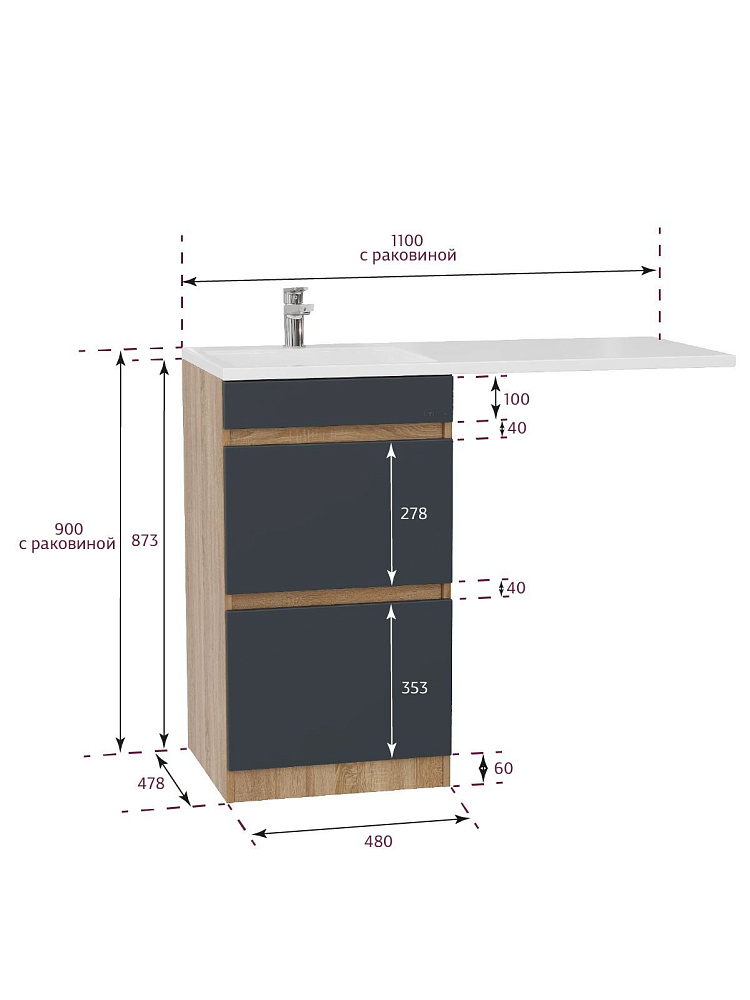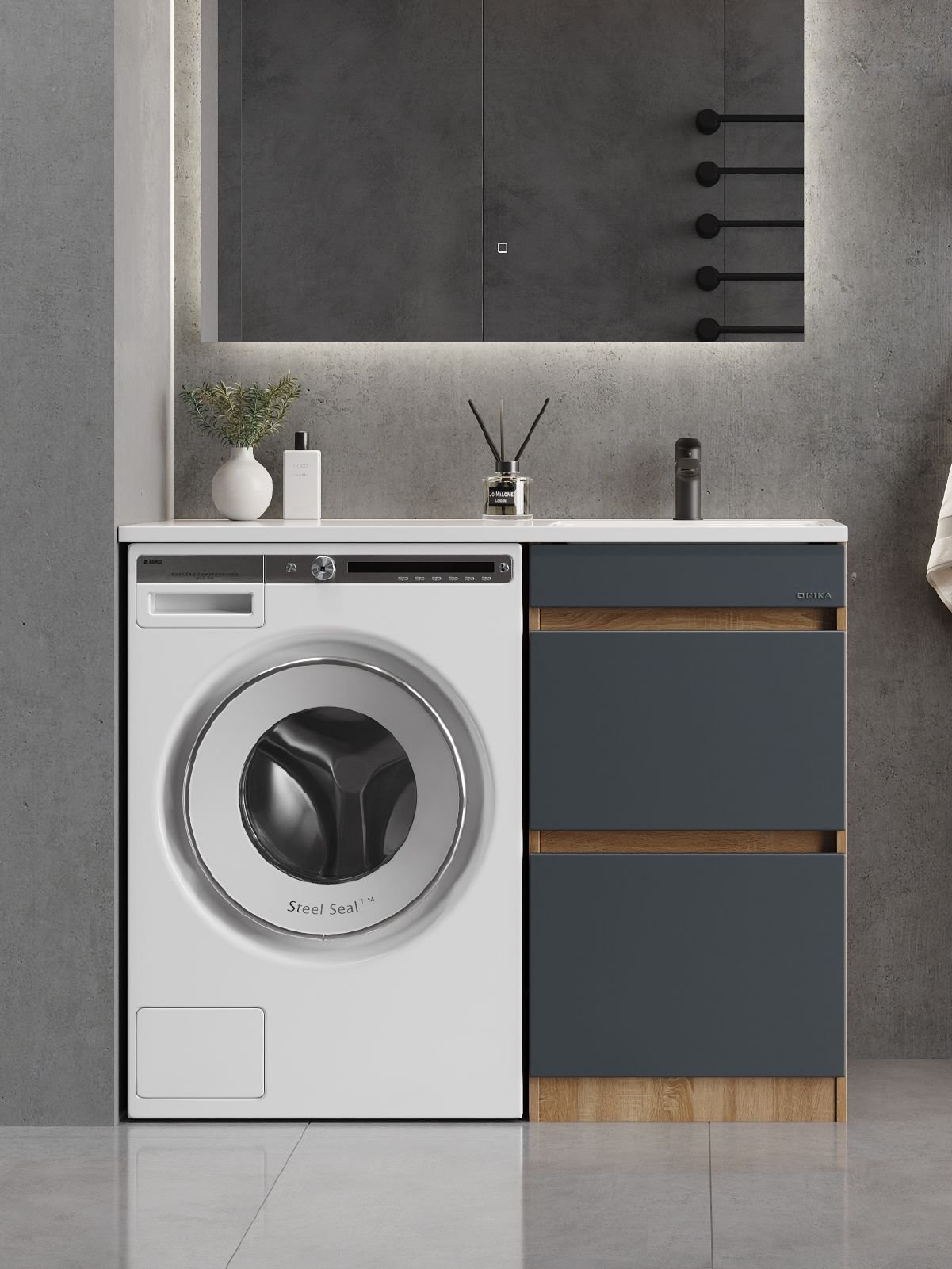 Тумба Onika Милтон 48 напольная под стиральную машину, серая/дуб сонома (ум.Марсал 110)
