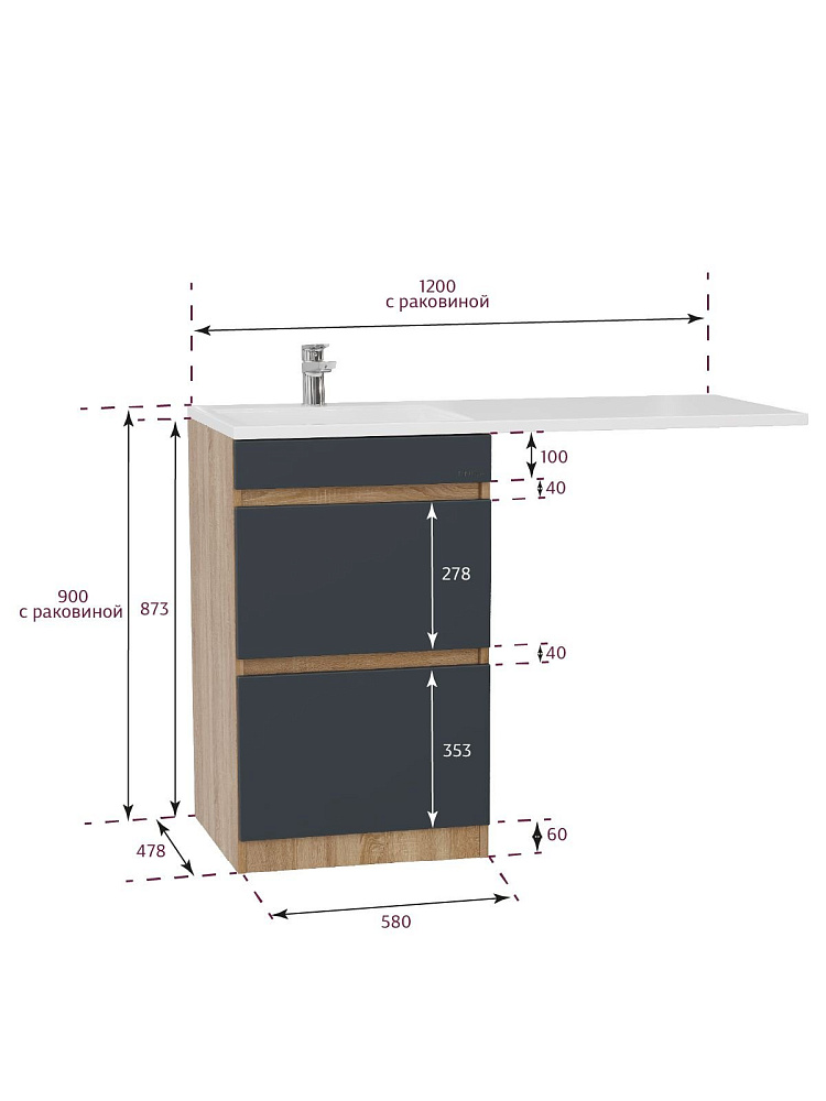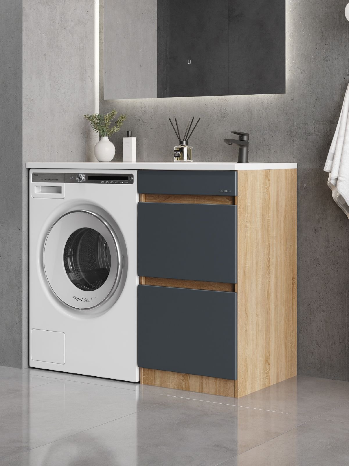 Тумба Onika Милтон 58 напольная под стиральную машину, серая/дуб сонома (ум.Марсал 120)