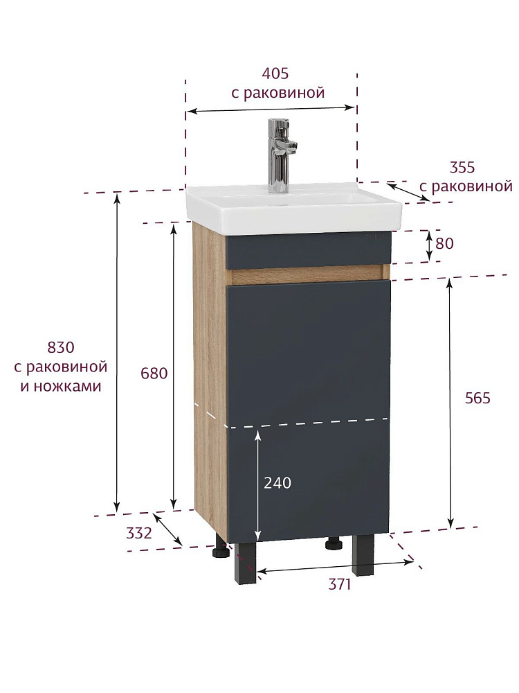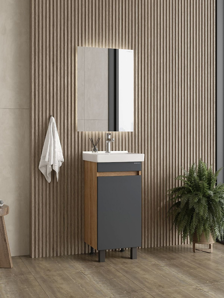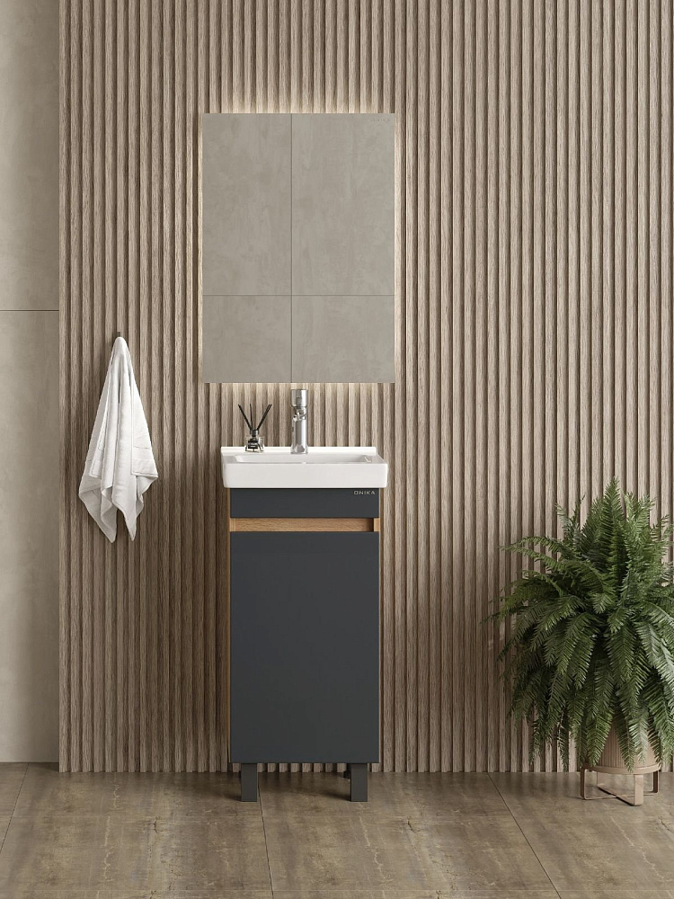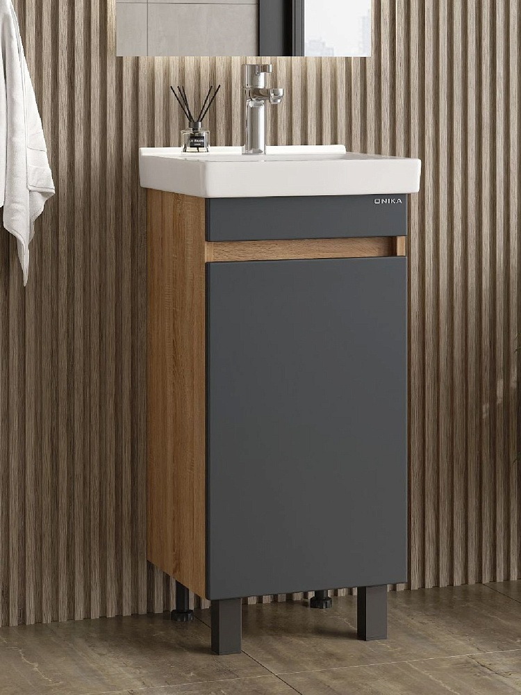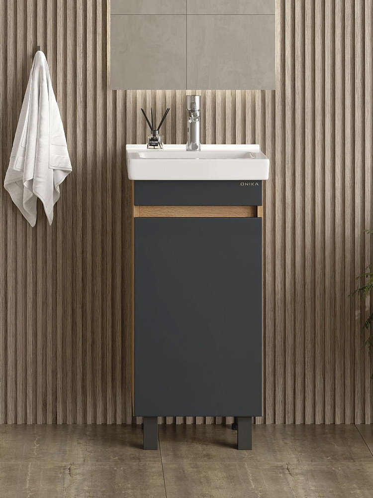 Тумба Onika Милтон Квадро 40 напольная, серая/дуб сонома (ум. Визит 40)