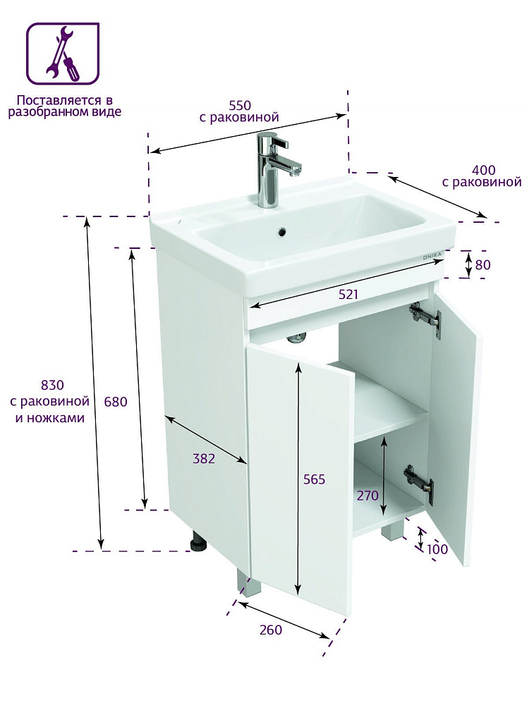 Тумба Onika Милтон Квадро 55 напольная, белая, разборная (ум.Визит 55)