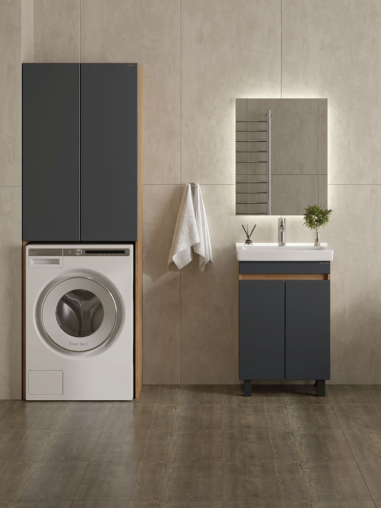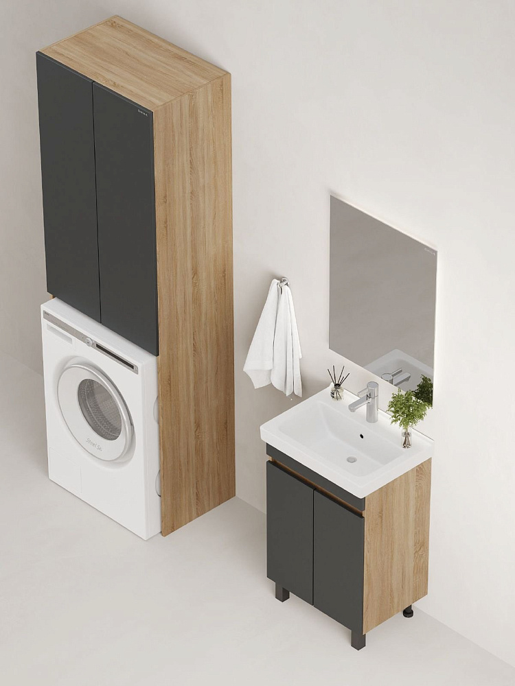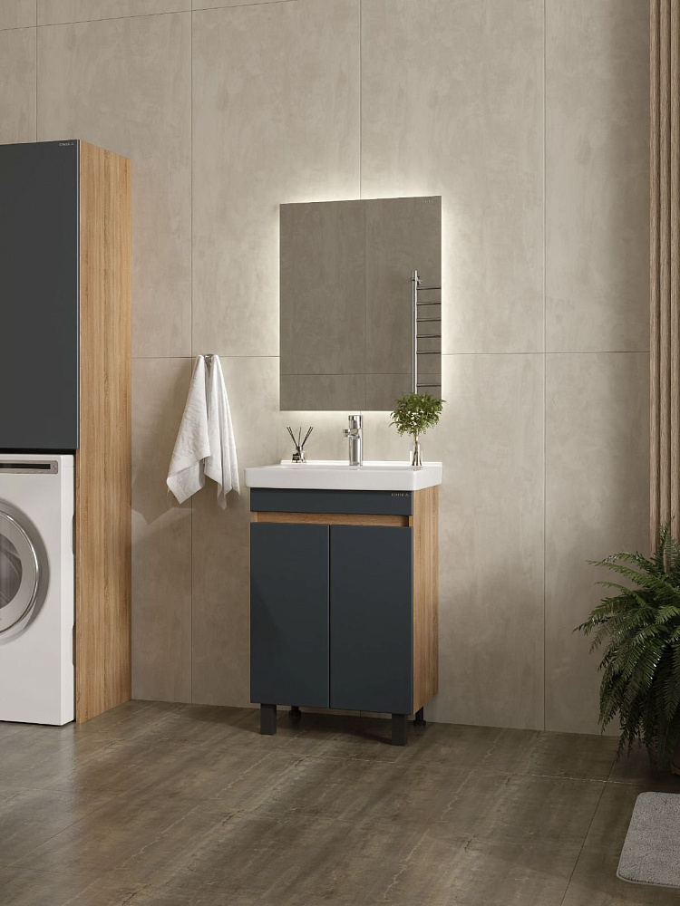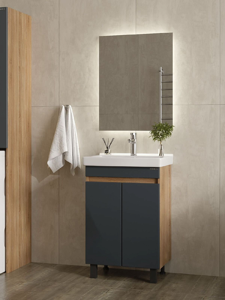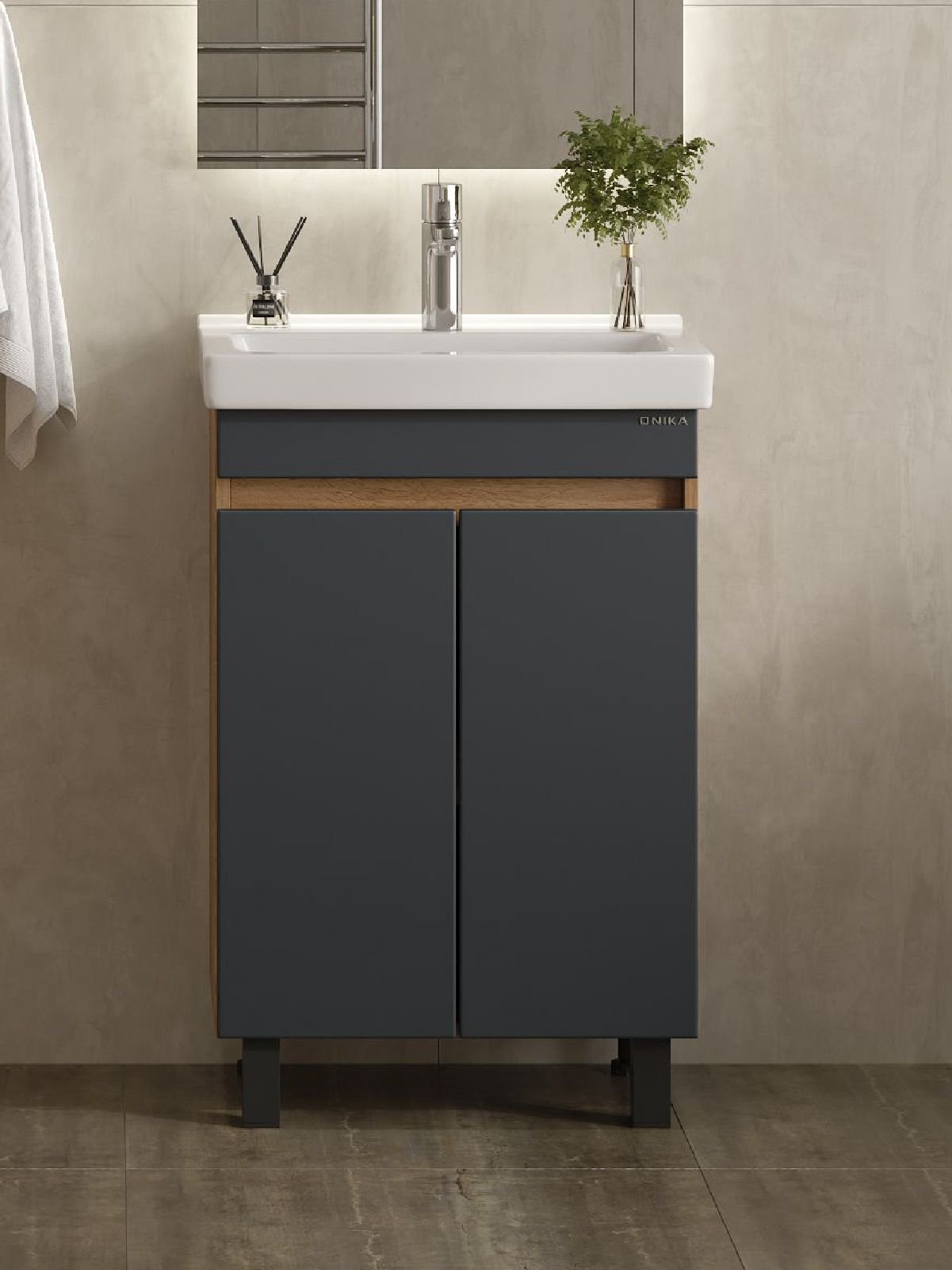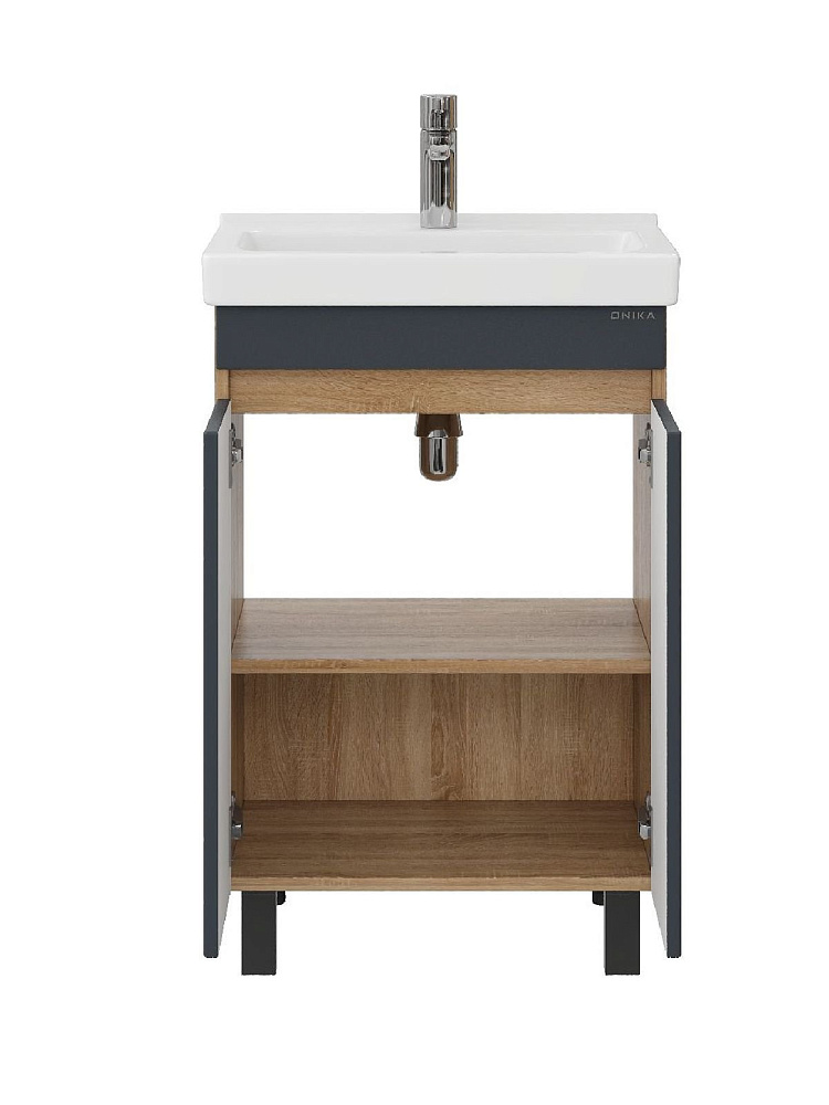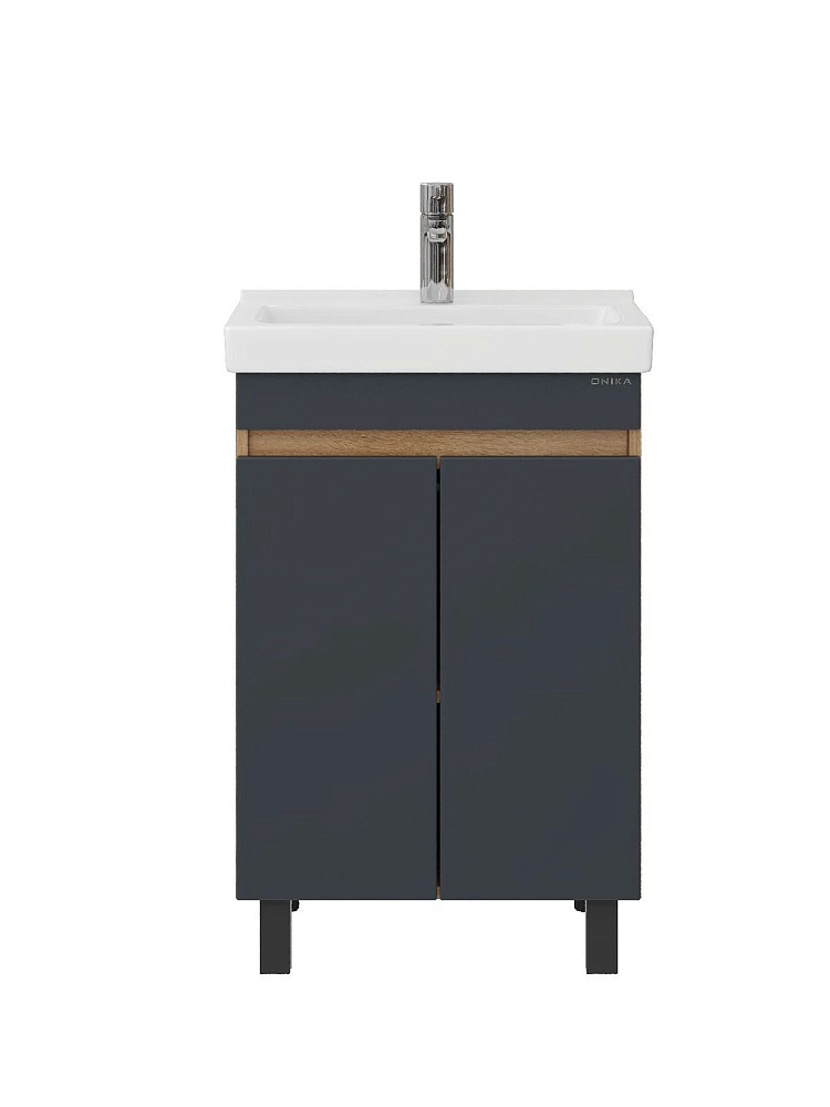 Тумба Onika Милтон Квадро 55 напольная, серая/дуб сонома (ум.Визит 55)