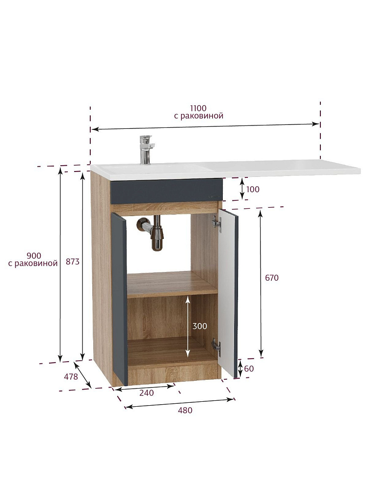 Тумба Onika Милтон Нова 48 напольная под стиральную машину, серая/дуб сонома (ум.Марсал 110)