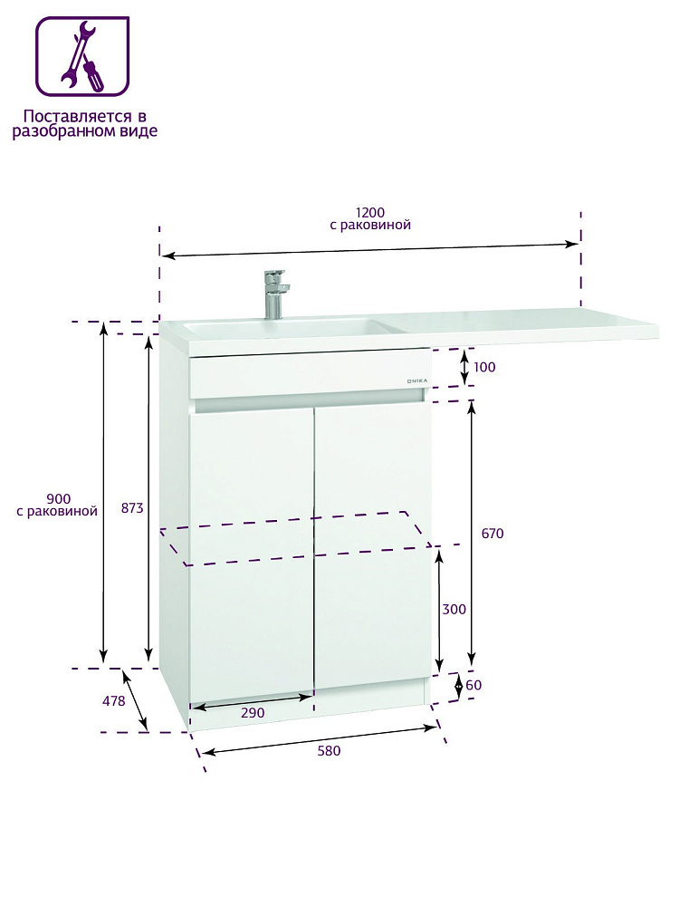 Тумба Onika Милтон Нова 58 напольная под стиральную машину, белая, разборная (ум.Марсал 120)