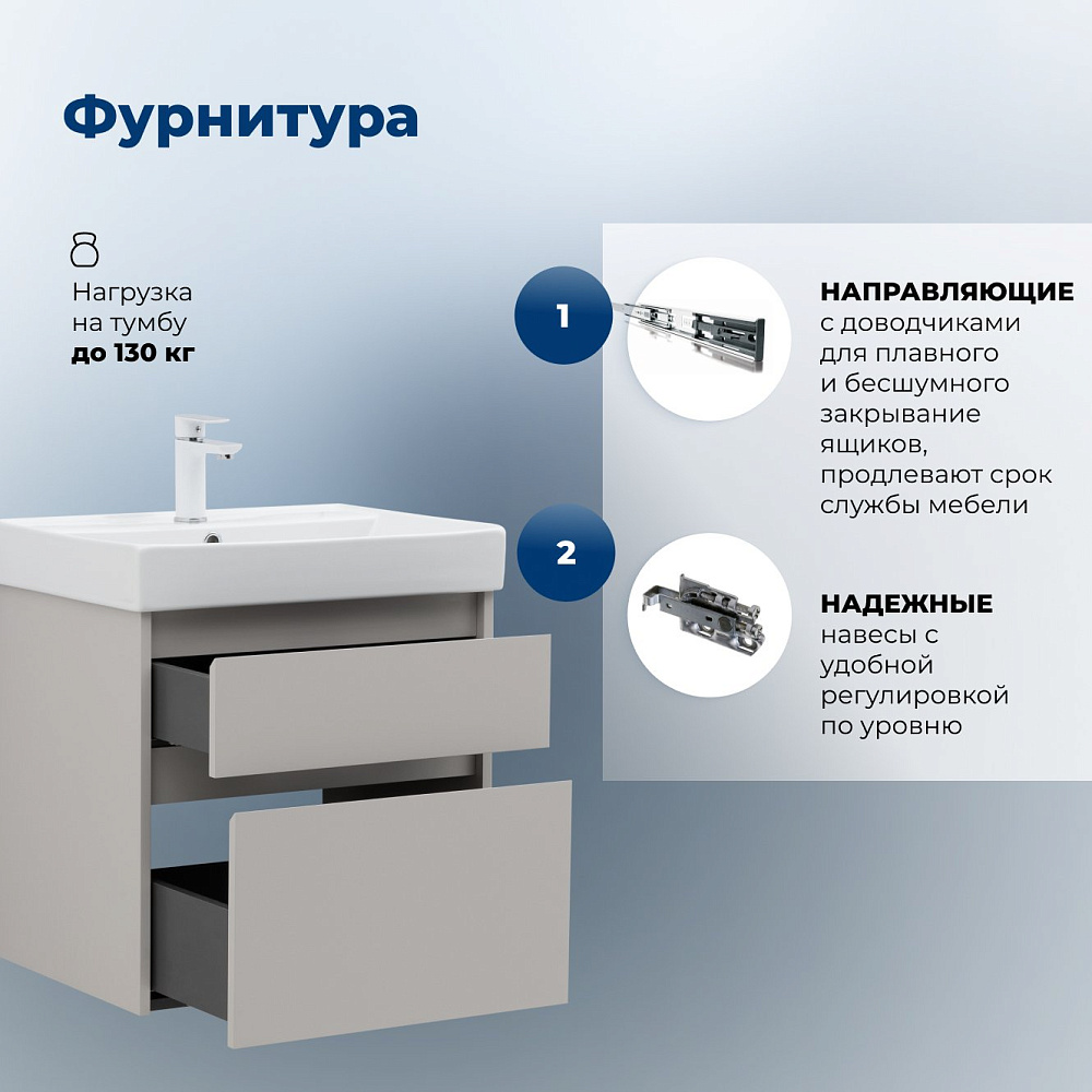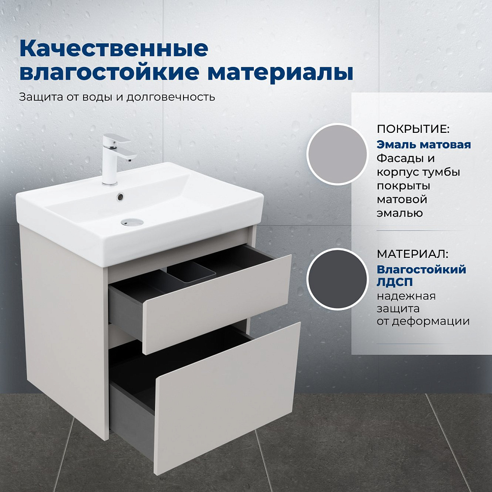 Отзывы о Тумба под раковину без столешницы Aquanet 60 2 ящ. цв. бежевый (346322)