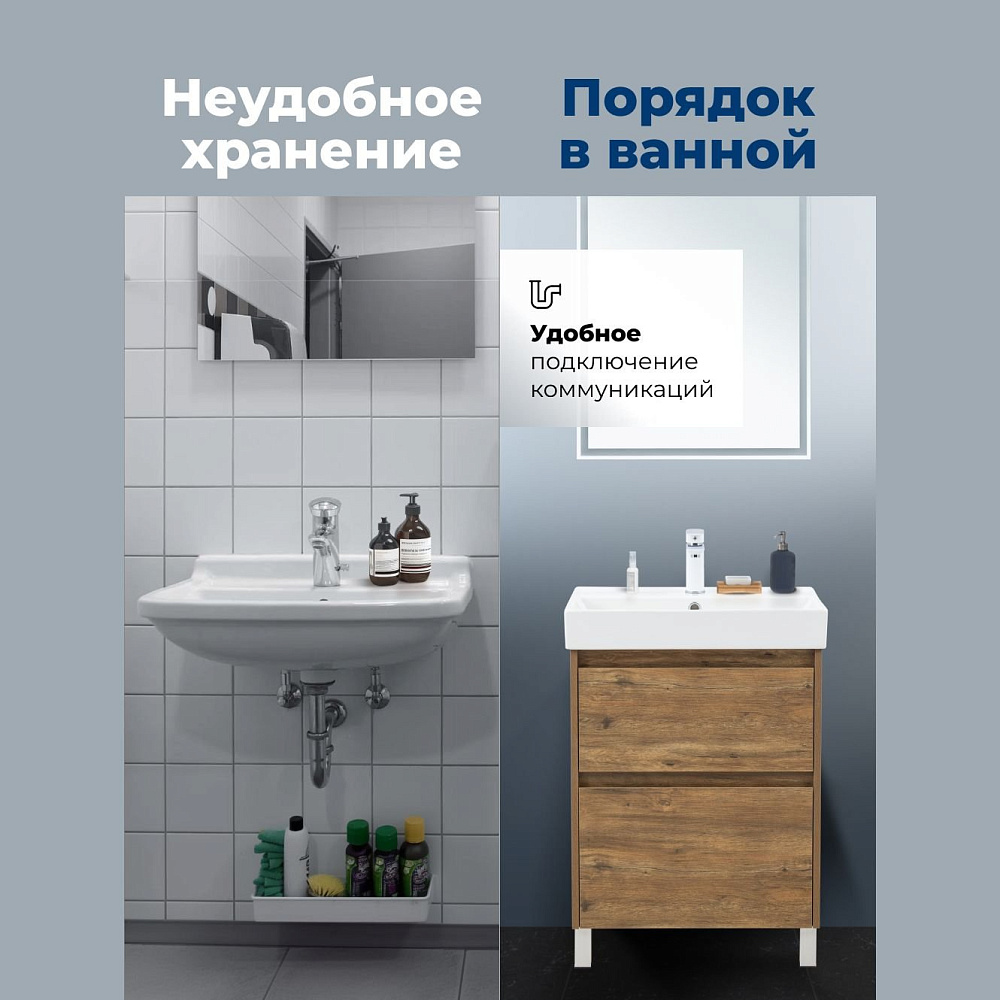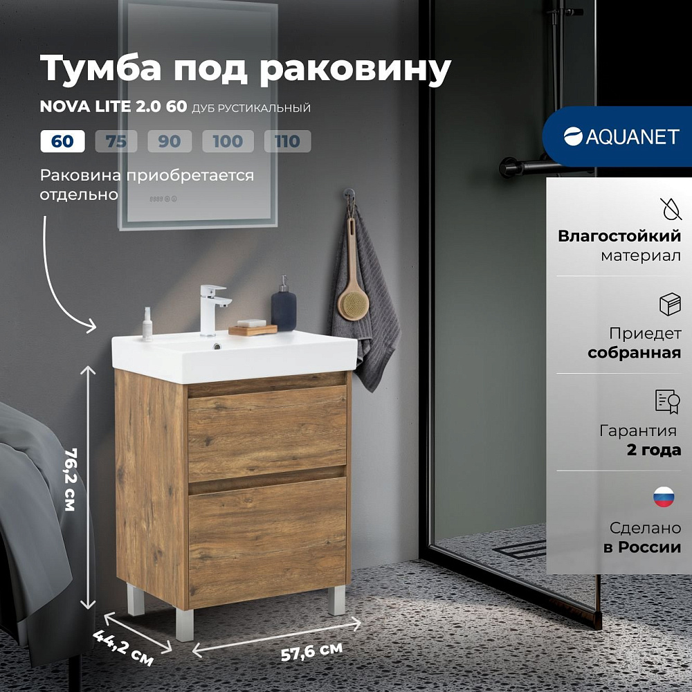 Тумба под раковину без столешницы Aquanet 60 напольная цв. дуб рустикальный (346343)