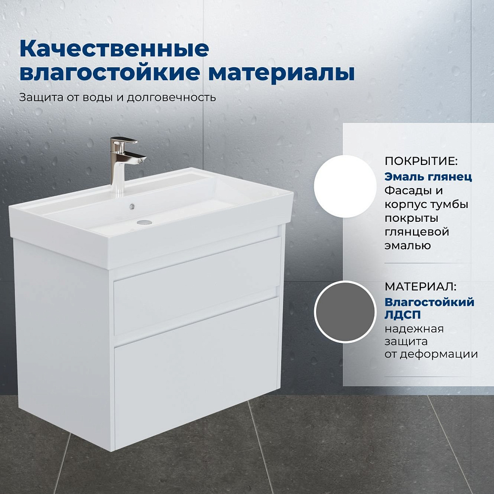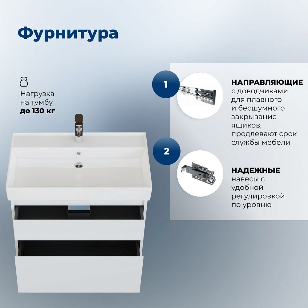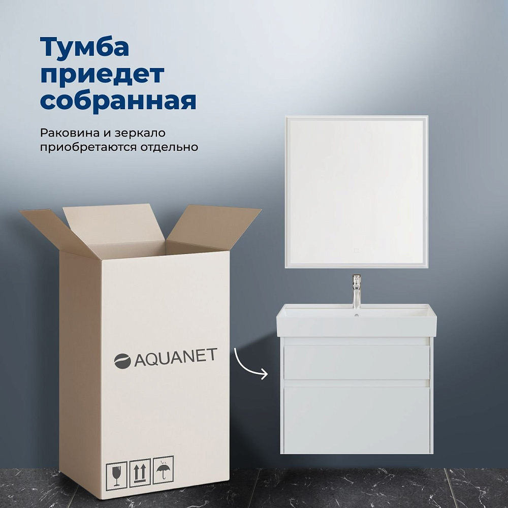 Тумба под раковину без столешницы Aquanet 75 2 ящ. цв. белый глянец (346309)
