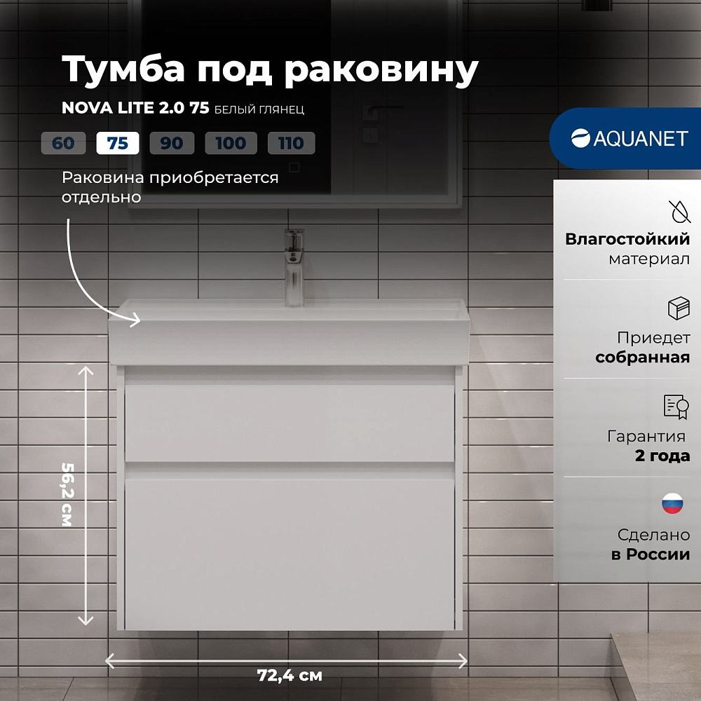 Отзывы о Тумба под раковину без столешницы Aquanet 75 2 ящ. цв. белый глянец (346309)
