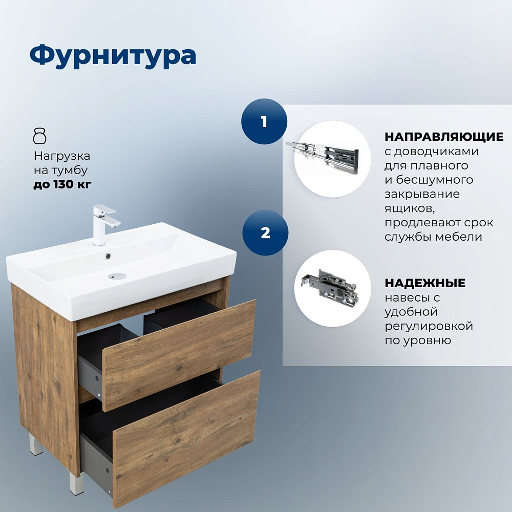 Тумба под раковину без столешницы Aquanet 75 напольная цв. дуб рустикальный (346344)