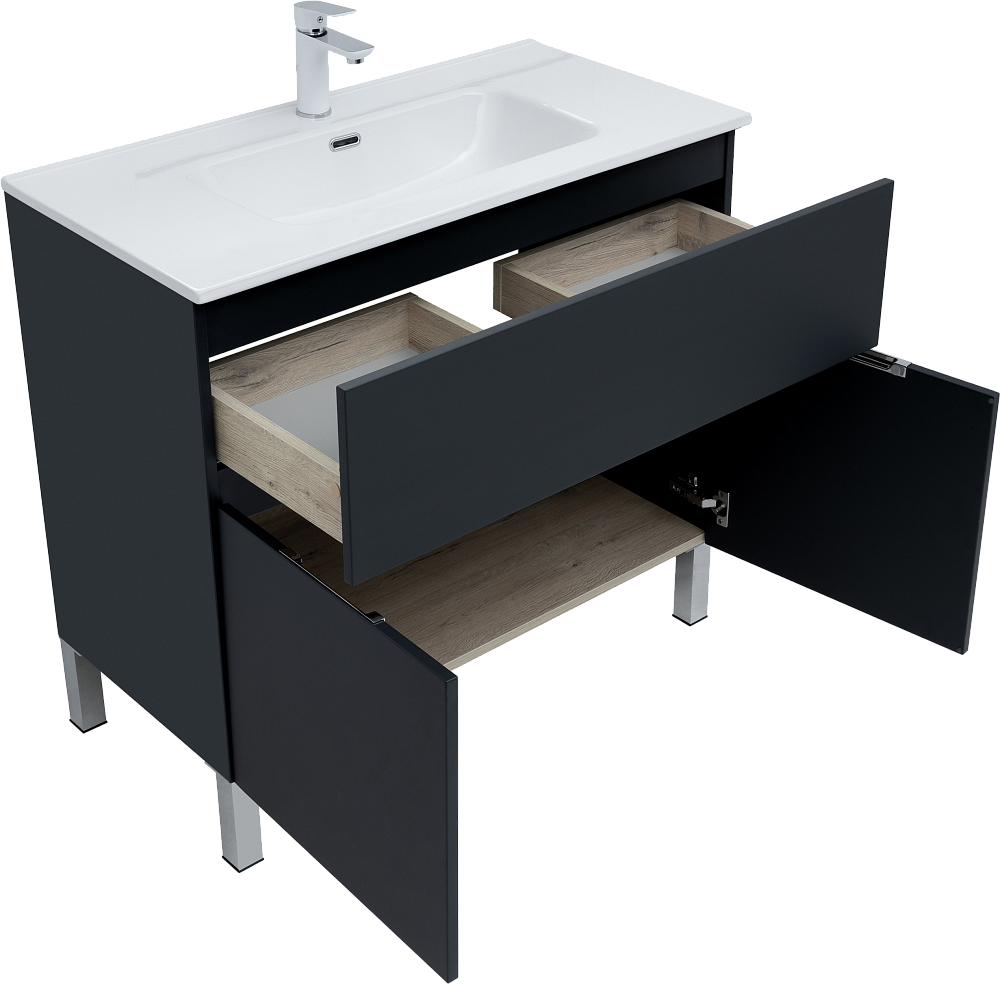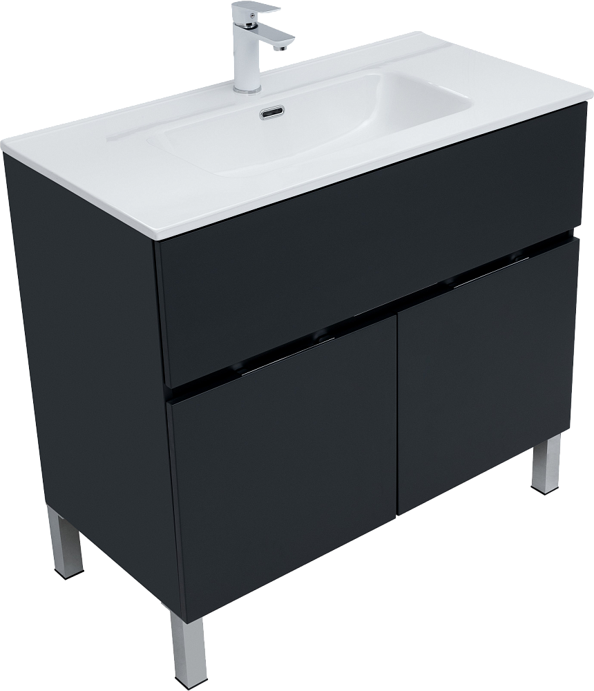 Тумба под раковину Aquanet Алвита, 90 напольная, антрацит, с дверками и ящиком