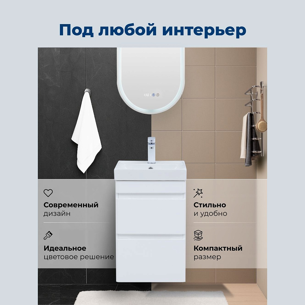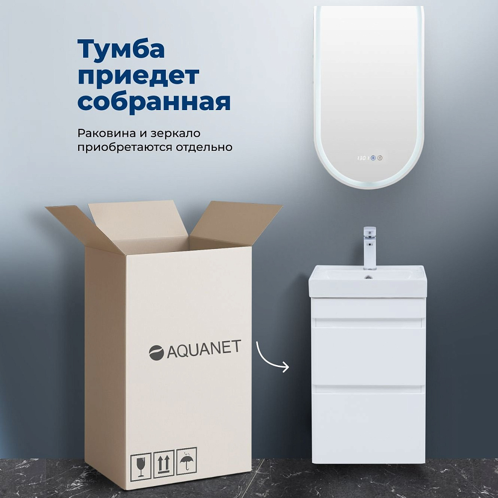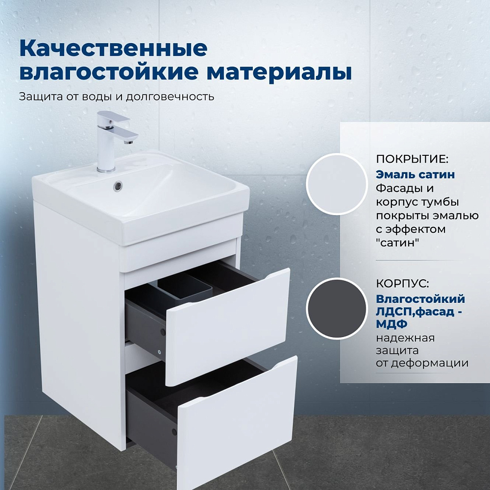 Тумба под раковину без столешницы Aquanet Слим 40 2 ящ. цв.белый сатин (346045)