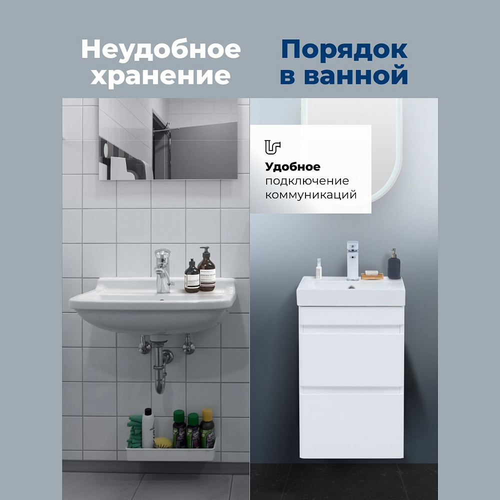 Отзывы о Тумба под раковину без столешницы Aquanet Слим 40 2 ящ. цв.белый сатин (346045)