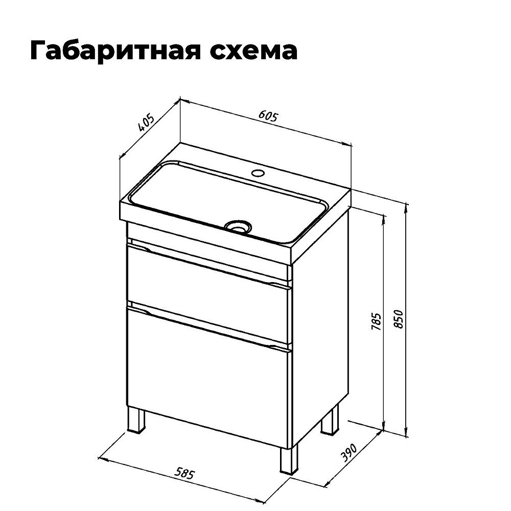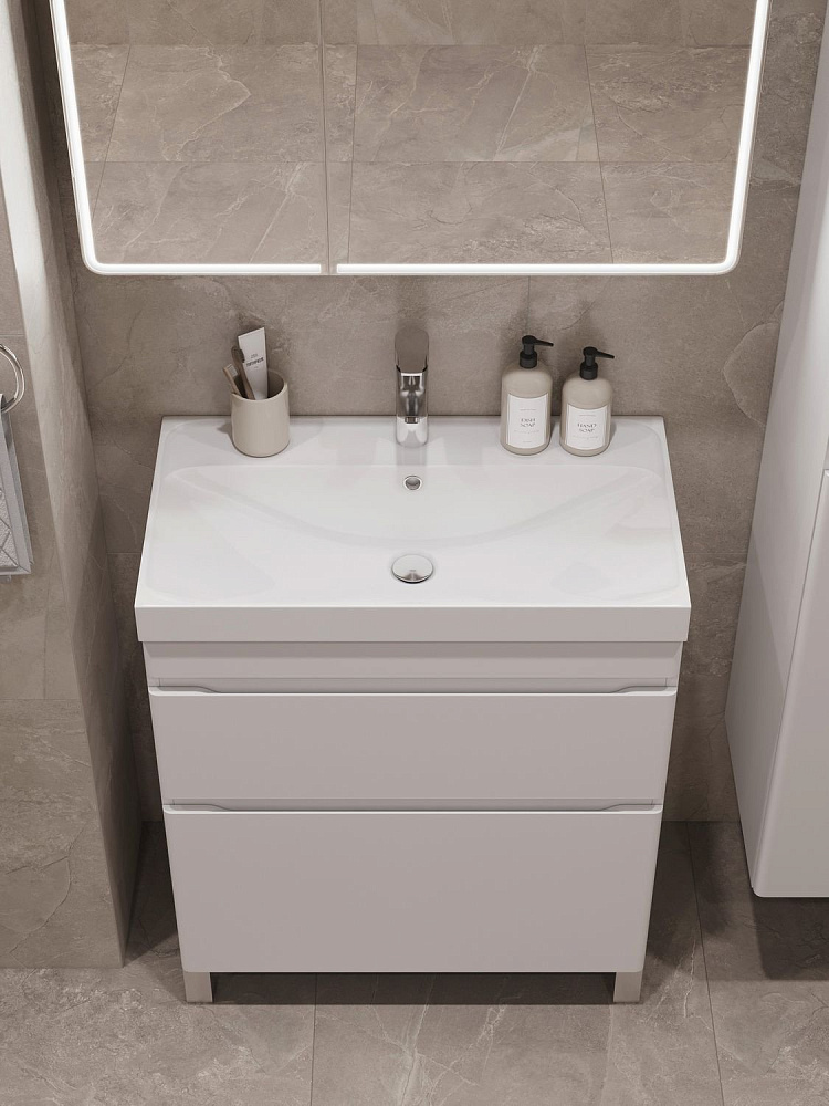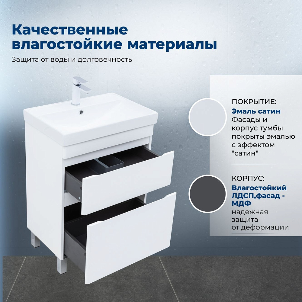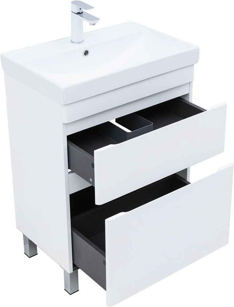 Тумба под раковину без столешницы Aquanet Слим 60 напольная 2 ящ. цв.белый сатин (346042)