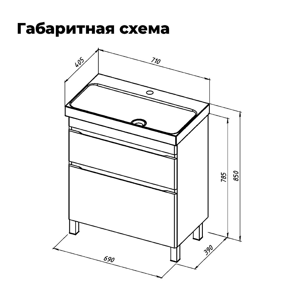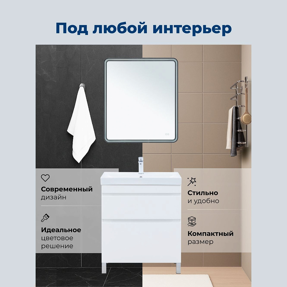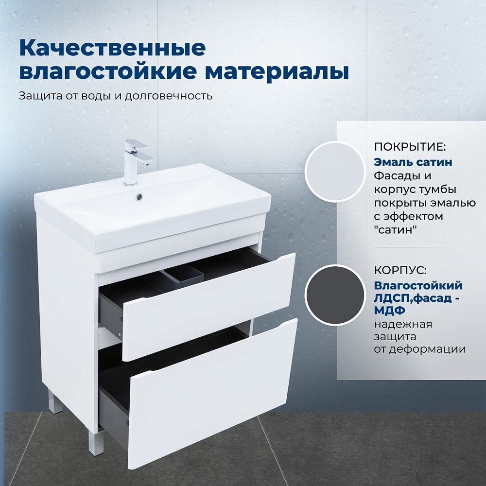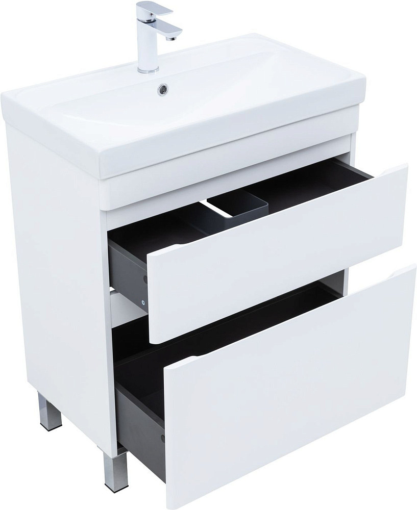 Тумба под раковину без столешницы Aquanet Слим 70 напольная 2 ящ. цв.белый сатин (346043)
