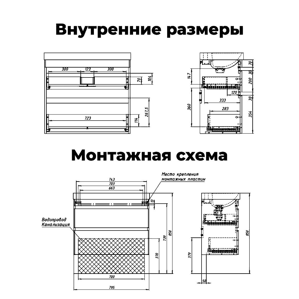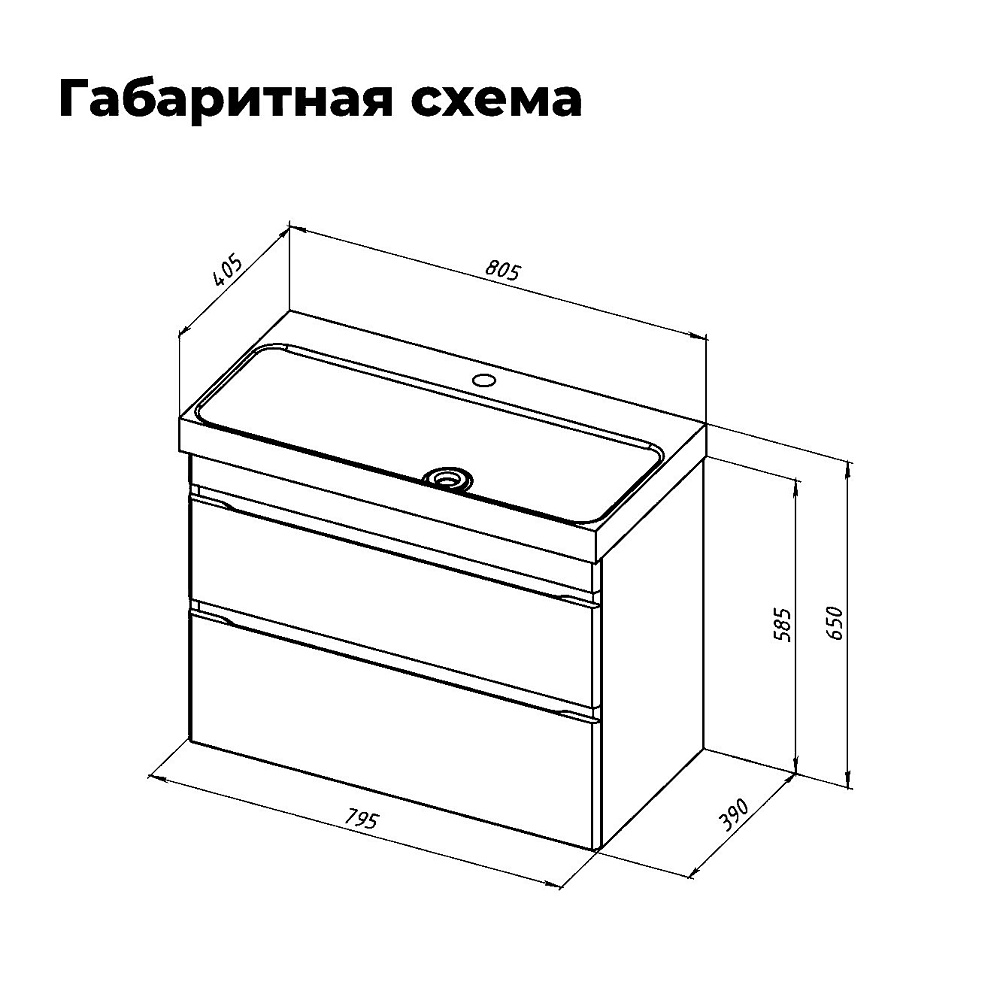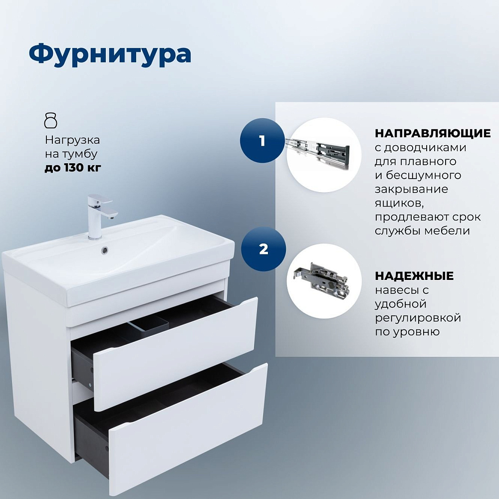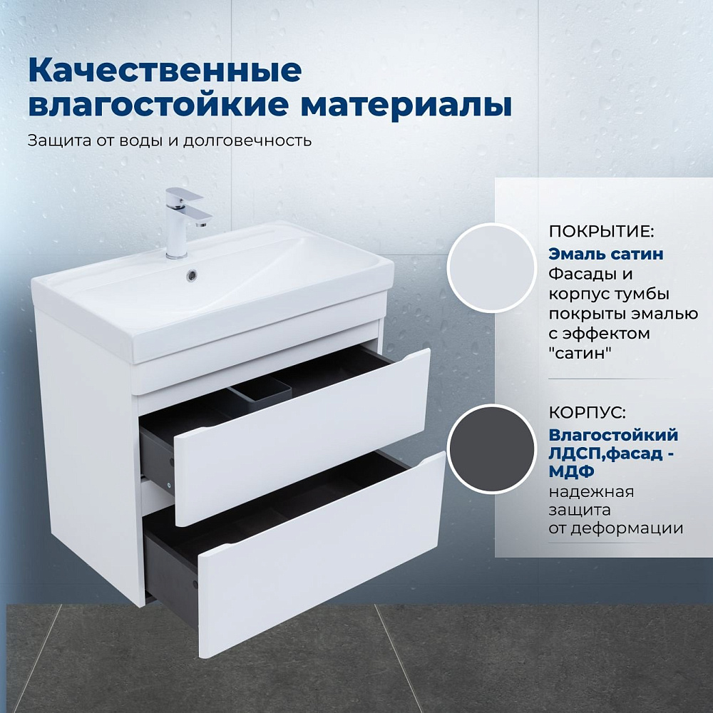 Тумба под раковину без столешницы Aquanet Слим 80 2 ящ. цв.белый сатин (346049)