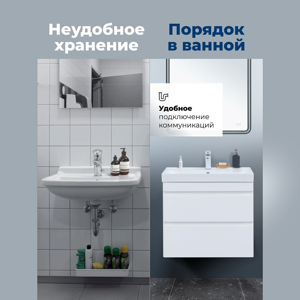 Отзывы о Тумба под раковину без столешницы Aquanet Слим 80 2 ящ. цв.белый сатин (346049)