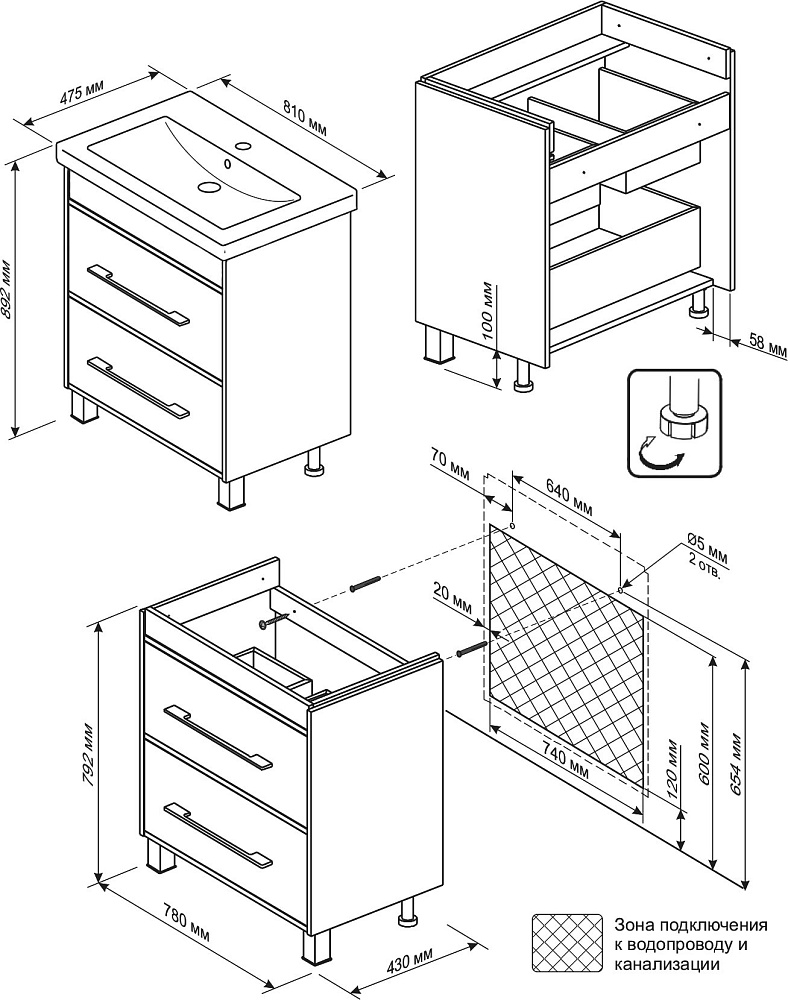 Отзывы о Тумба под раковину Бриклаер Чили 80 цемент